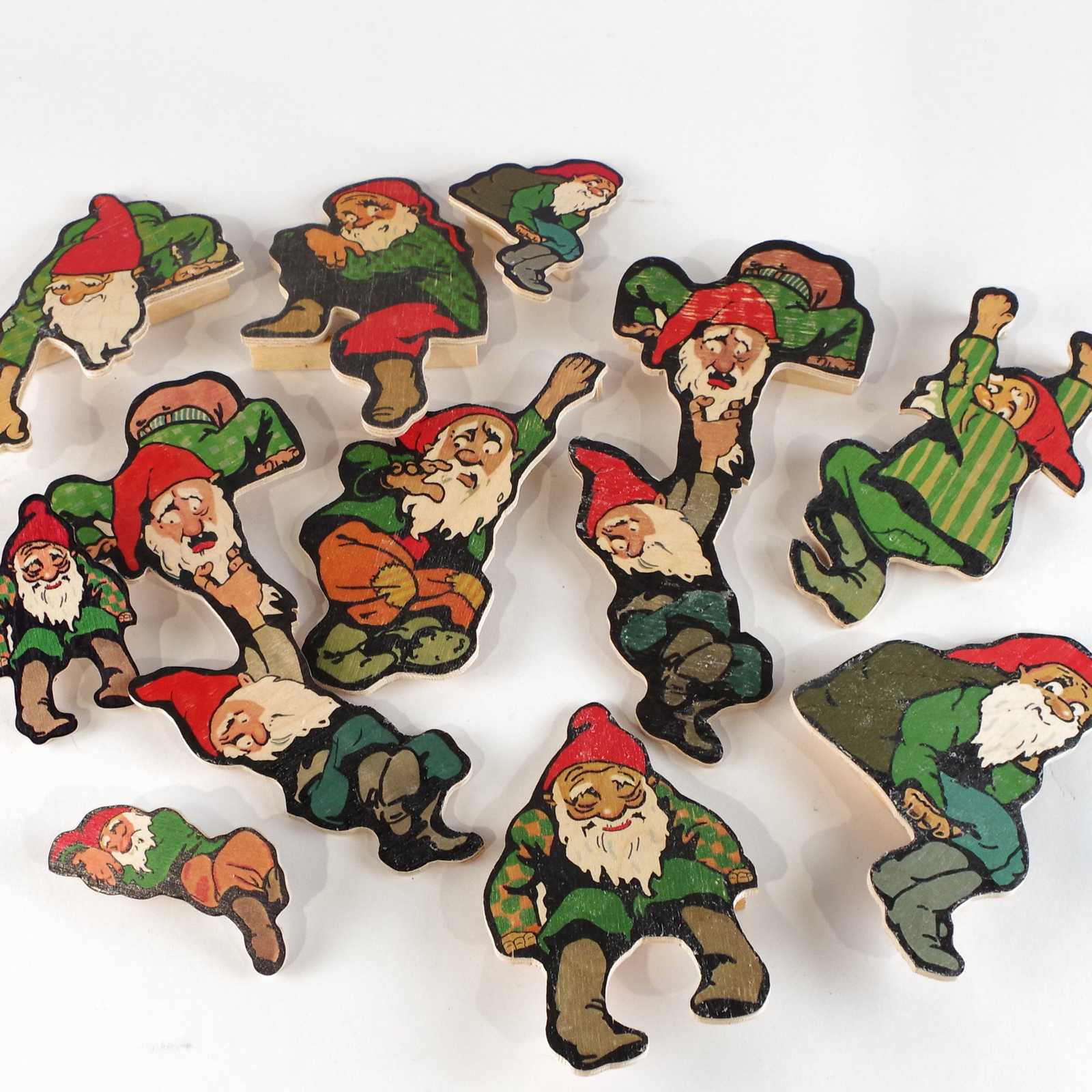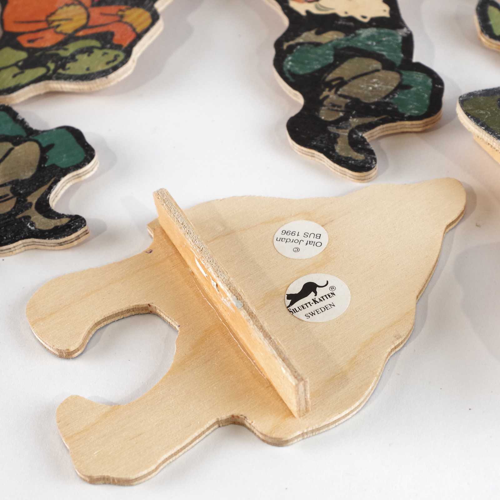 Bilder TRÄTOMTAR bl.a. hängande. H:19,5cm största.