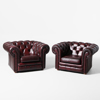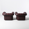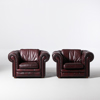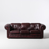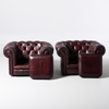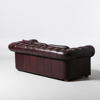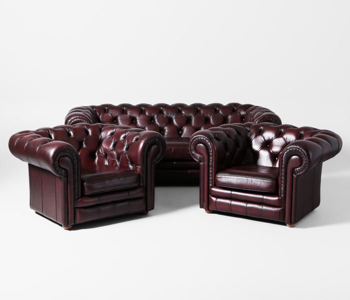 SOFFGRUPP, 2+1, chesterfield-modell, 1900-talets andra hälft, bruntonat skinn, England, löstagbara dynor medföljer.