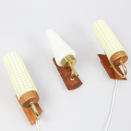 Bilder Vägglampor, 2+1, teak, mässing och glas, 1900-talets senare hälft, H=25
