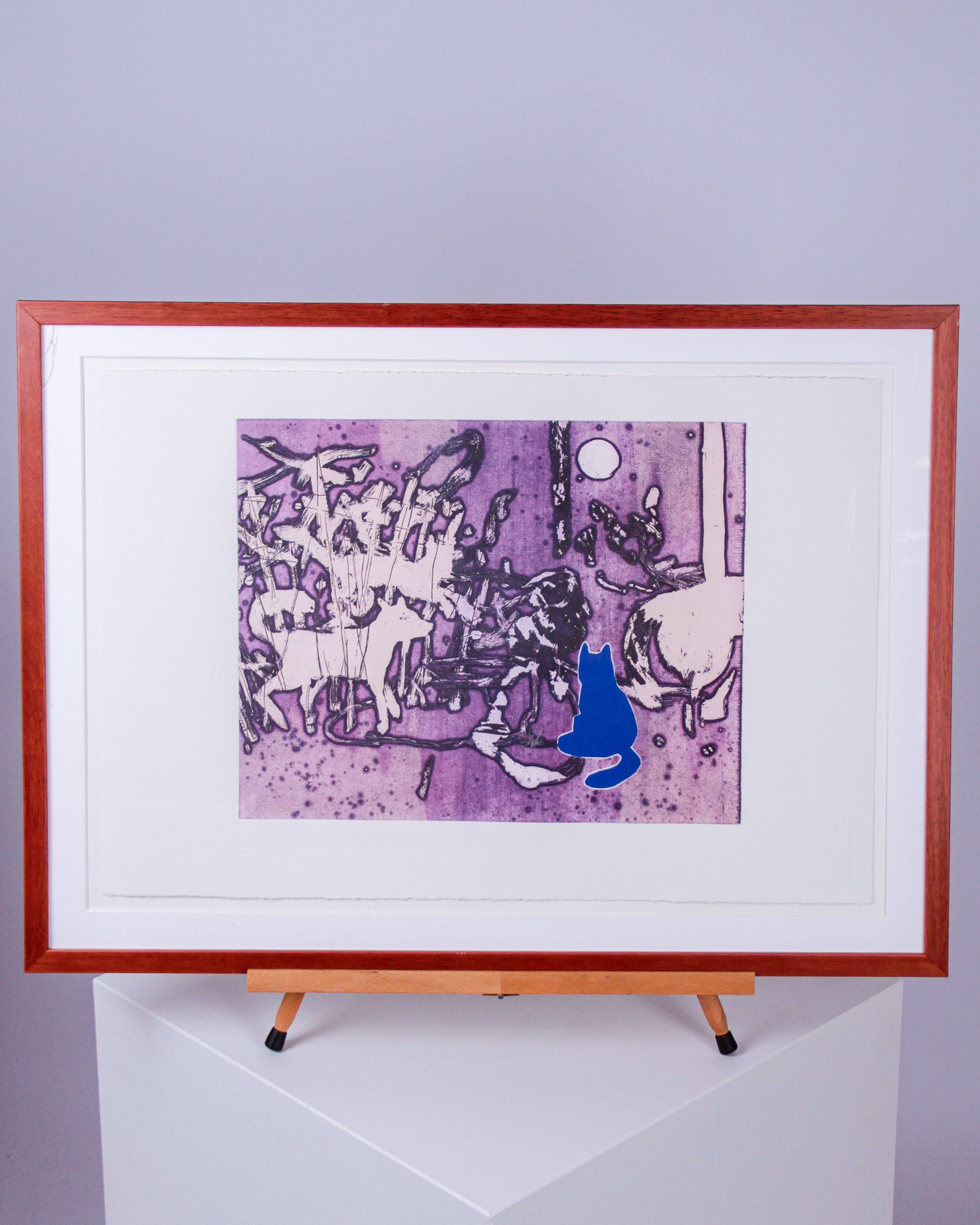 Etsning, "Blå katt", Ernst Billgren, ur samlingen "15 konstnärer - 30 konstverk", blindstämpel