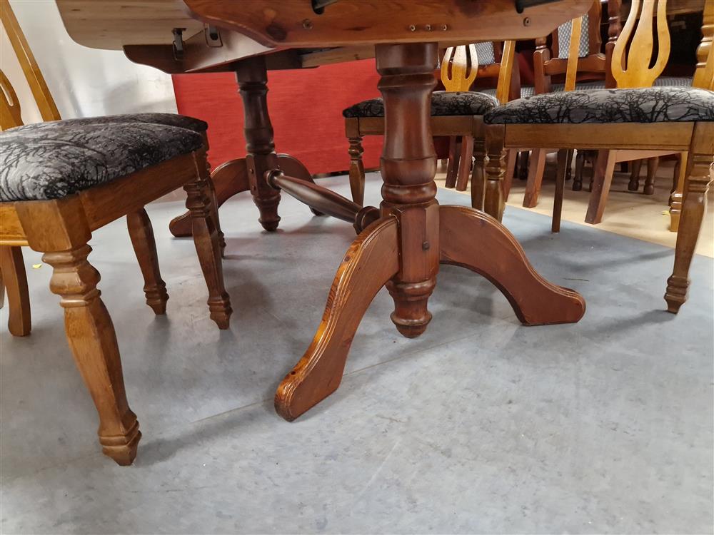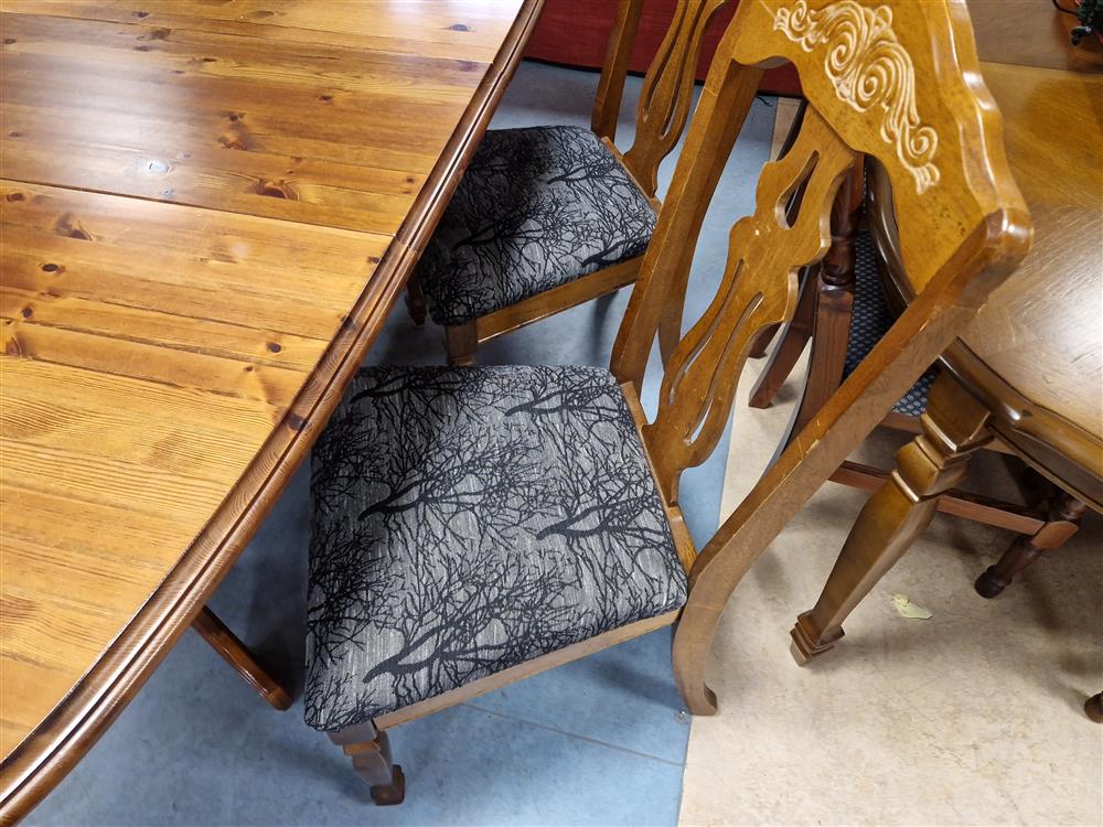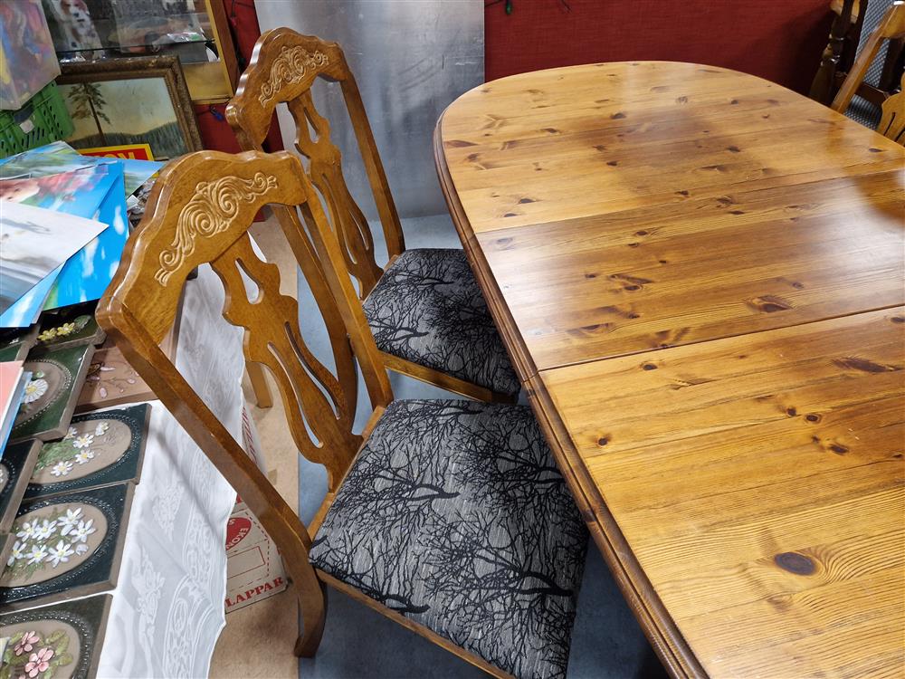 Bord höjd 73cm, bredd 110cm, längd med skiva 210cm, 4 st klädda stolar