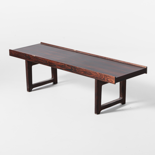 TORBJÖRN AFDAL, "Krobo", bänk, Bruksbo Mellemstrands Trevareindustri, Norge, 1960-tal, etikettmärkt, samt med tillhörande flyttbart skivfack.