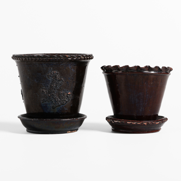 YTTERFODER MED FAT, 2 st, glaserat lergods, med originalfat, allmoge, Småland, 1800-tal