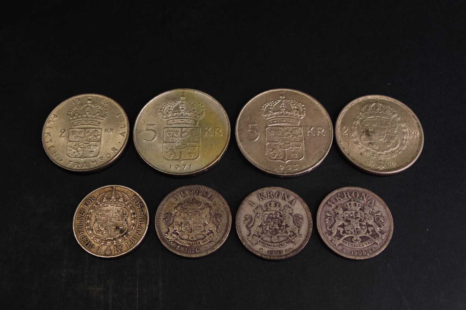 Bilder MYNT svenska 2st. 5:-, 2st. 2:- silver 40% och 4st. 1:- silver 80%
