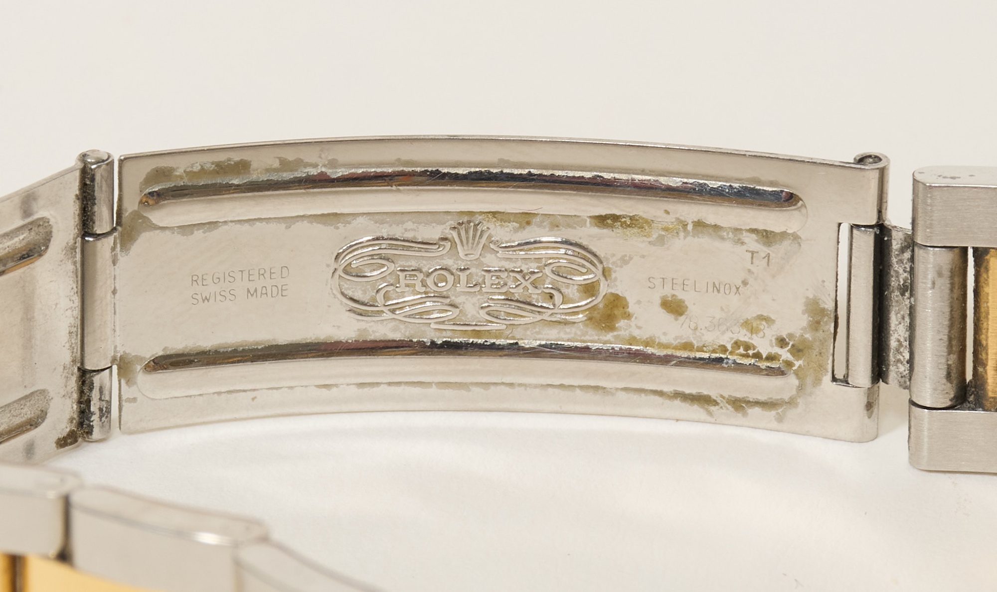 Stål/guld, automat, plexiglas, datum, Jubileelänk, viklås, ca 1990.