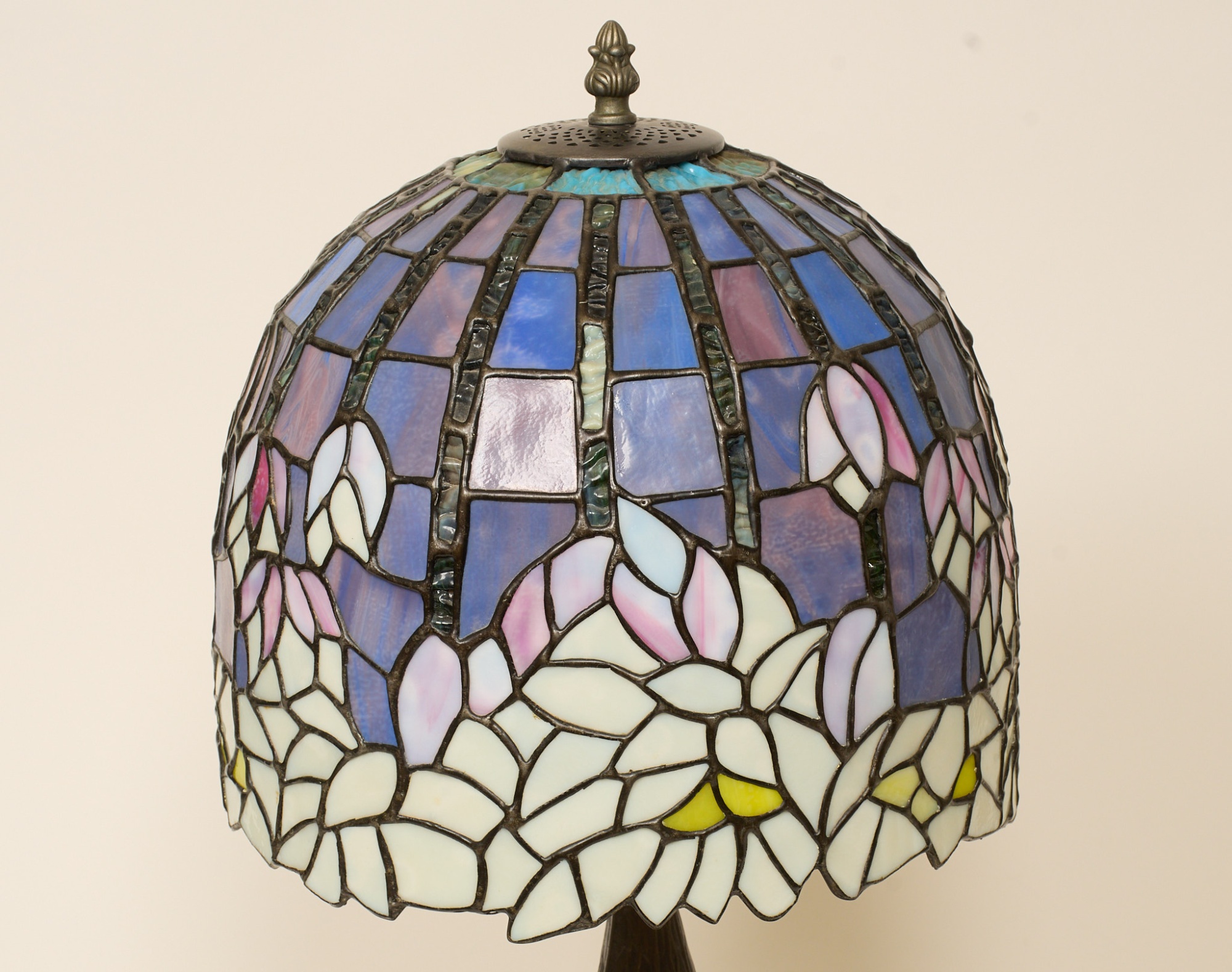 Kupa med blyinfattat glas, höjd 54 cm, smärre bruksslitage.
