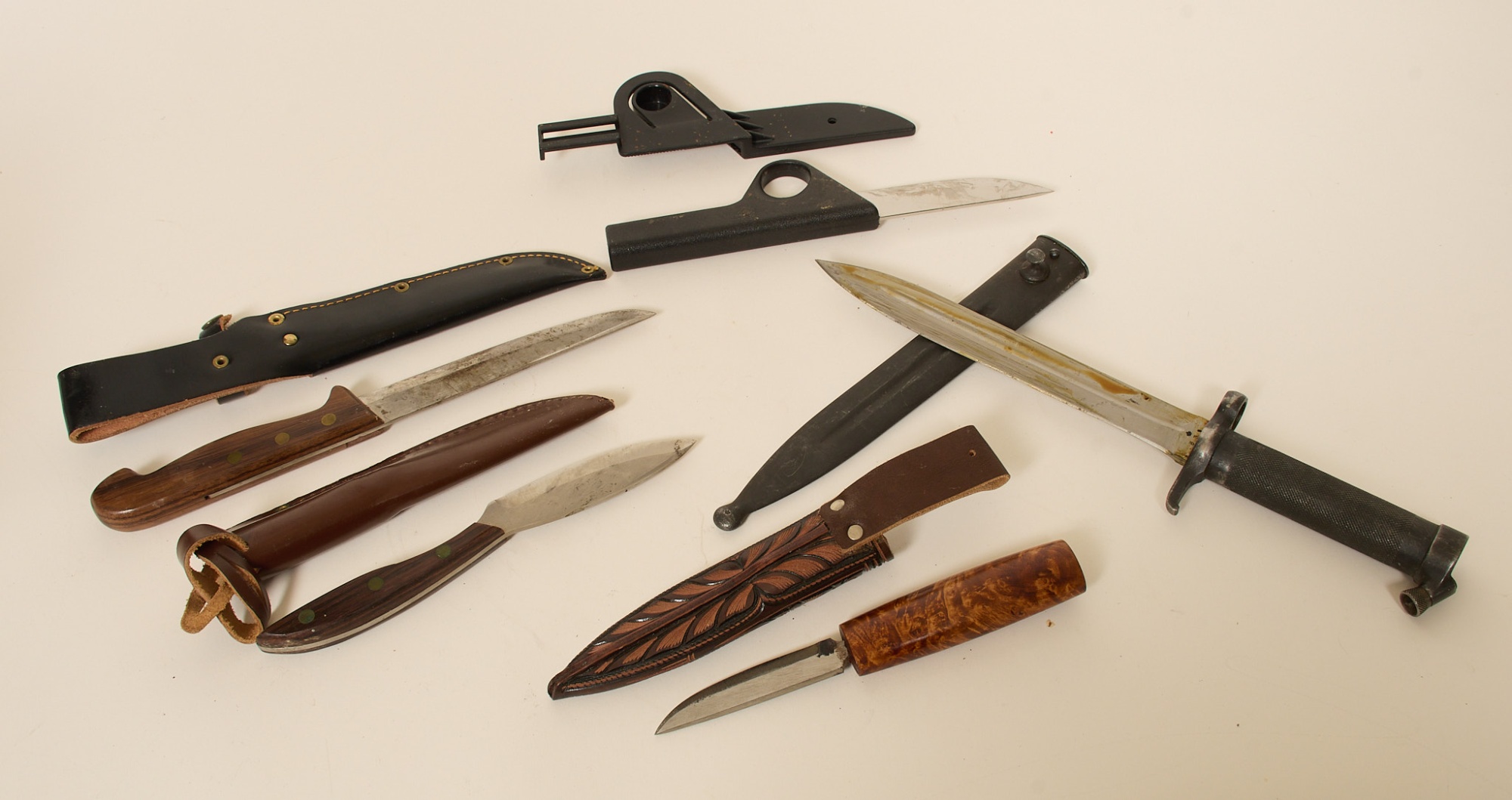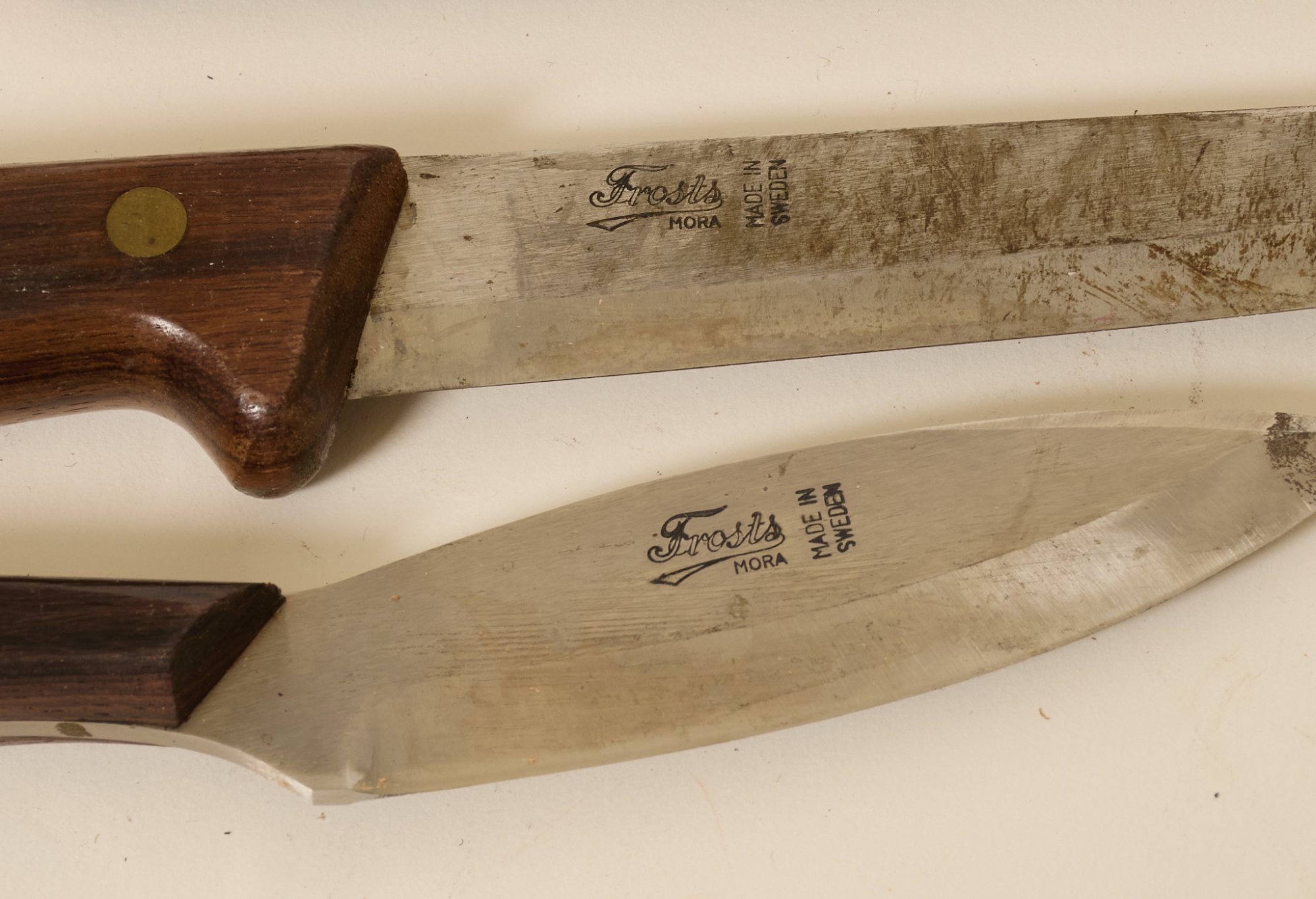 1 st bajonett m 1860. 2 st Frost. 1 st hanses design Sweden. 1 st handgjord med skaft i masurbjörk.