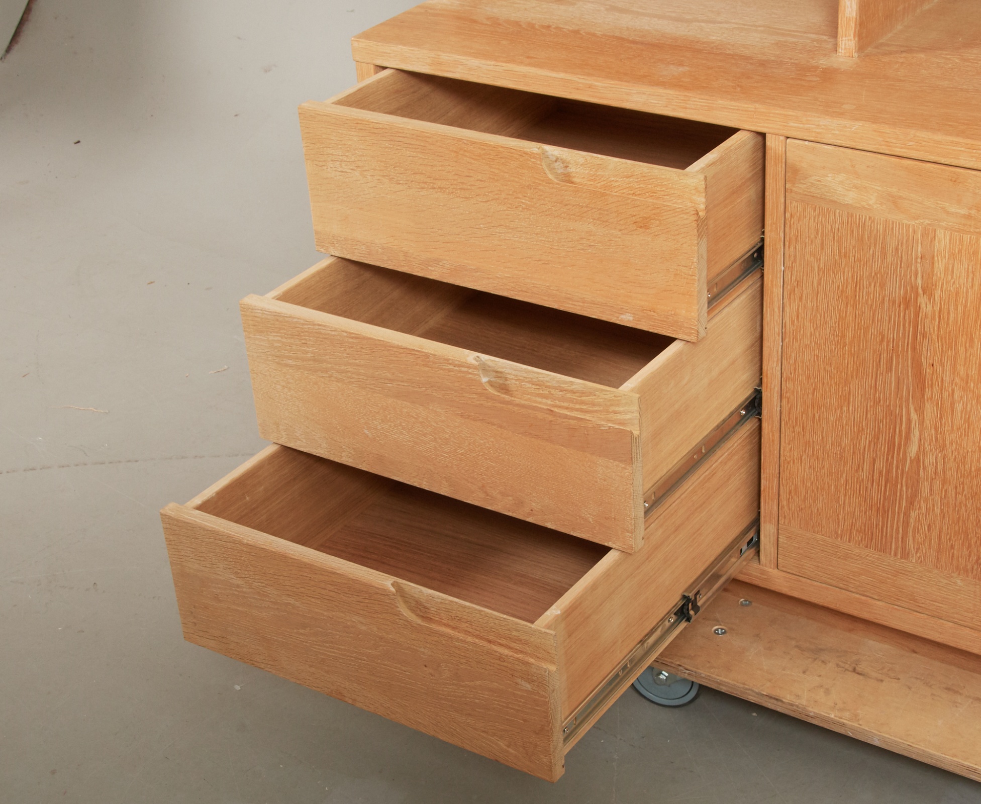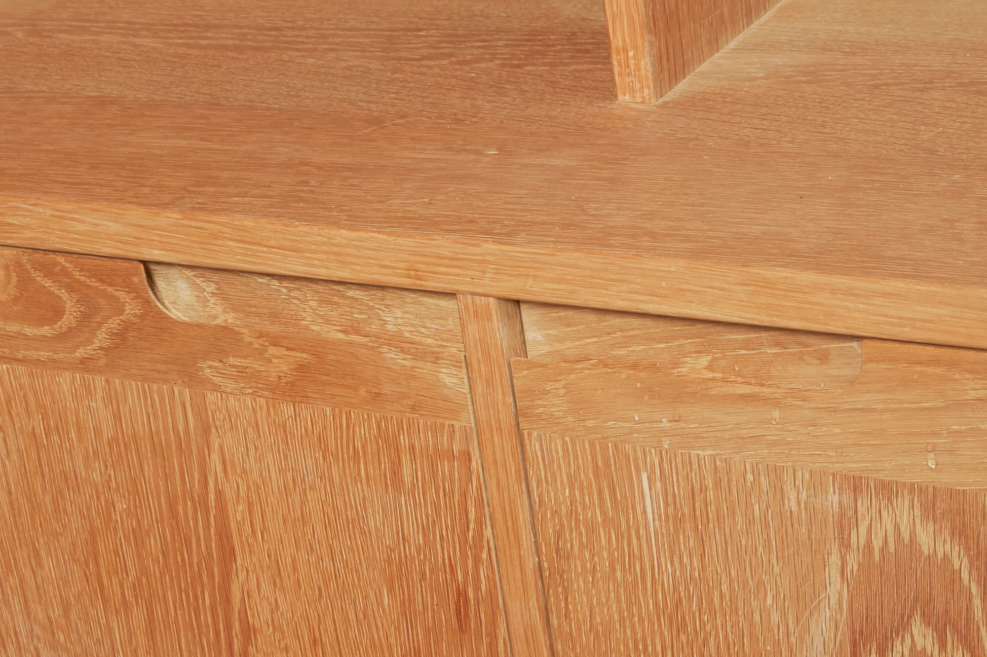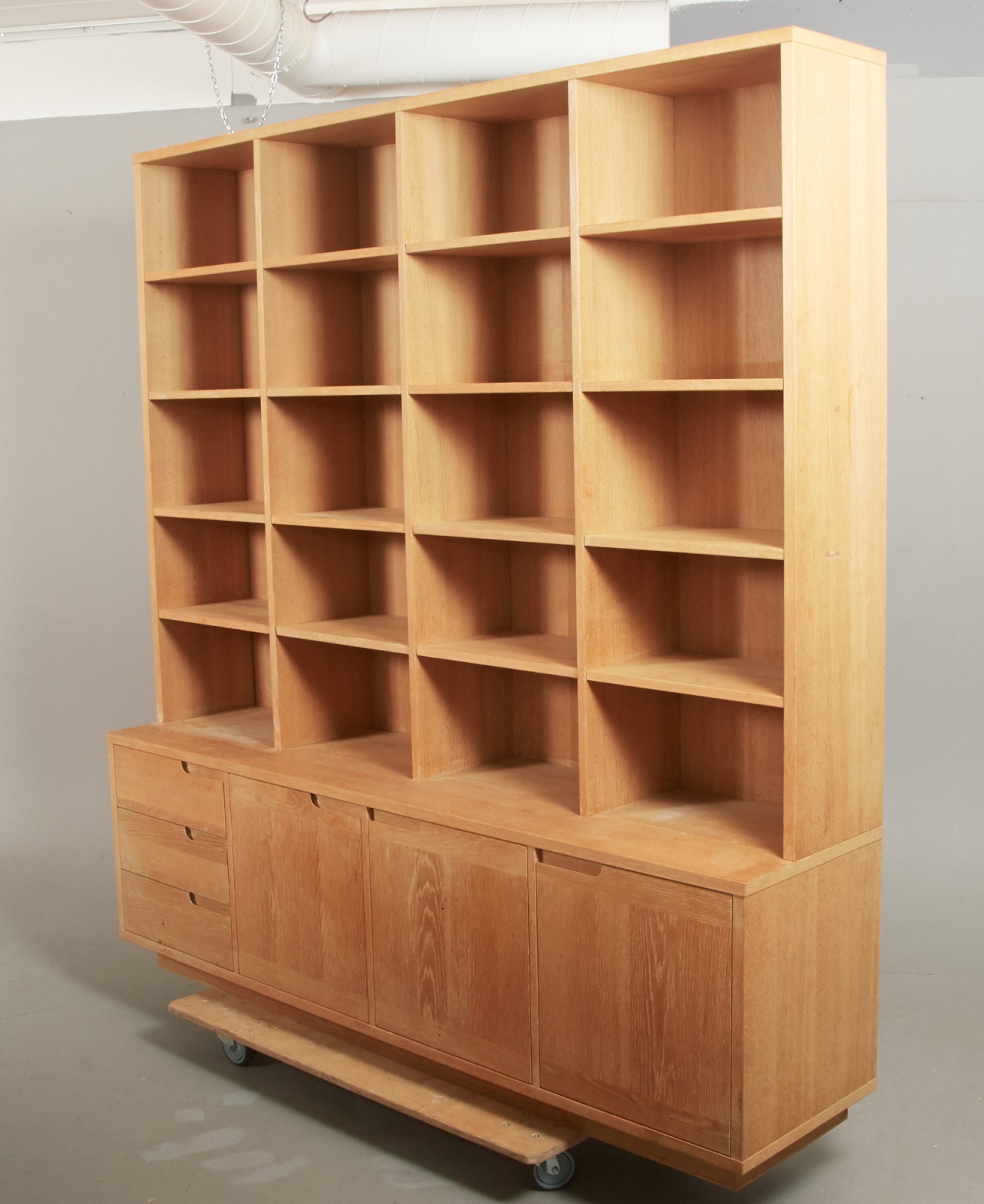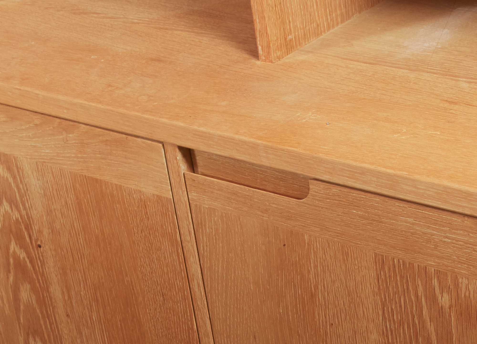 Ek, 2-delad, underdel med 4 dörrar, med bakomliggande förvaring, överdel med hyllförvaring, 191 x 45 cm, höjd ca 202 cm (61/141 cm) , smärre bruksslitage, men något fläckig.