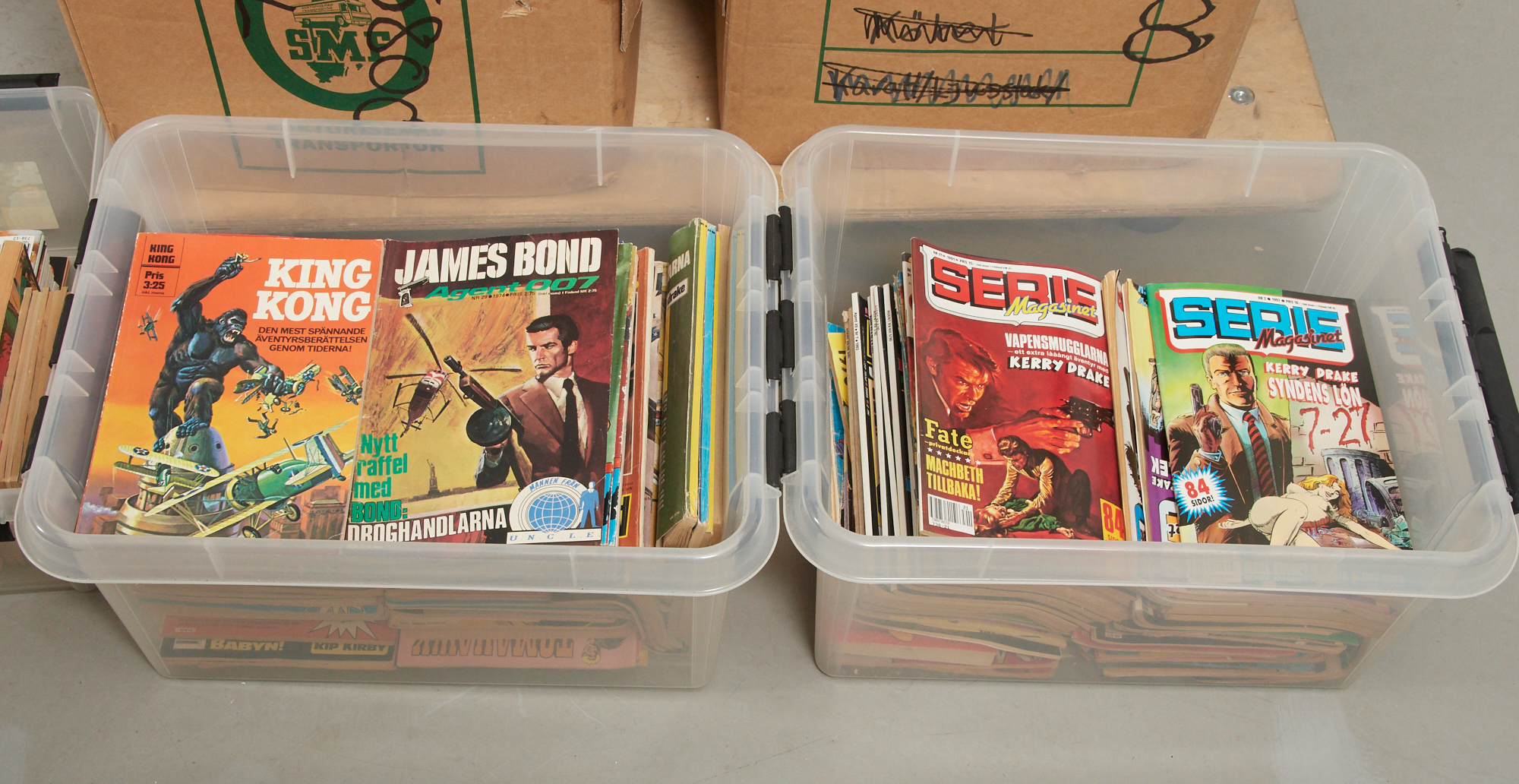 Stor mängd, bl.a. Fantomen, Klassiker, MAD, Prins Valliant, Mumin m.m. Varierande skick och åldrar. OBS! Skickas ej!