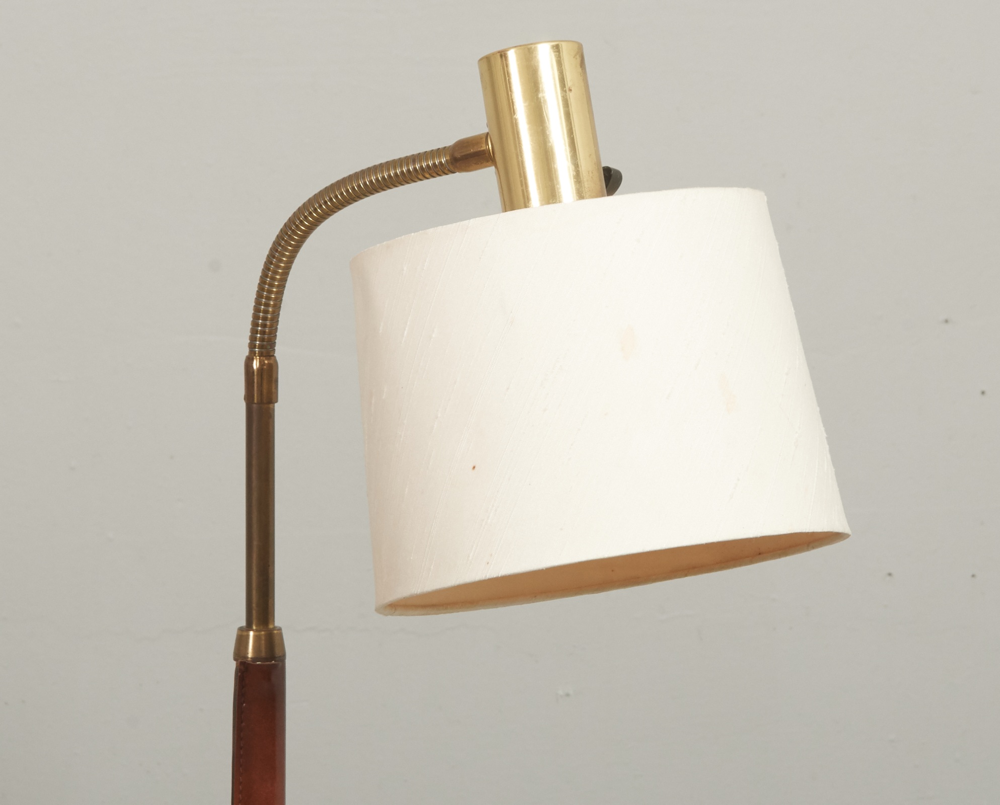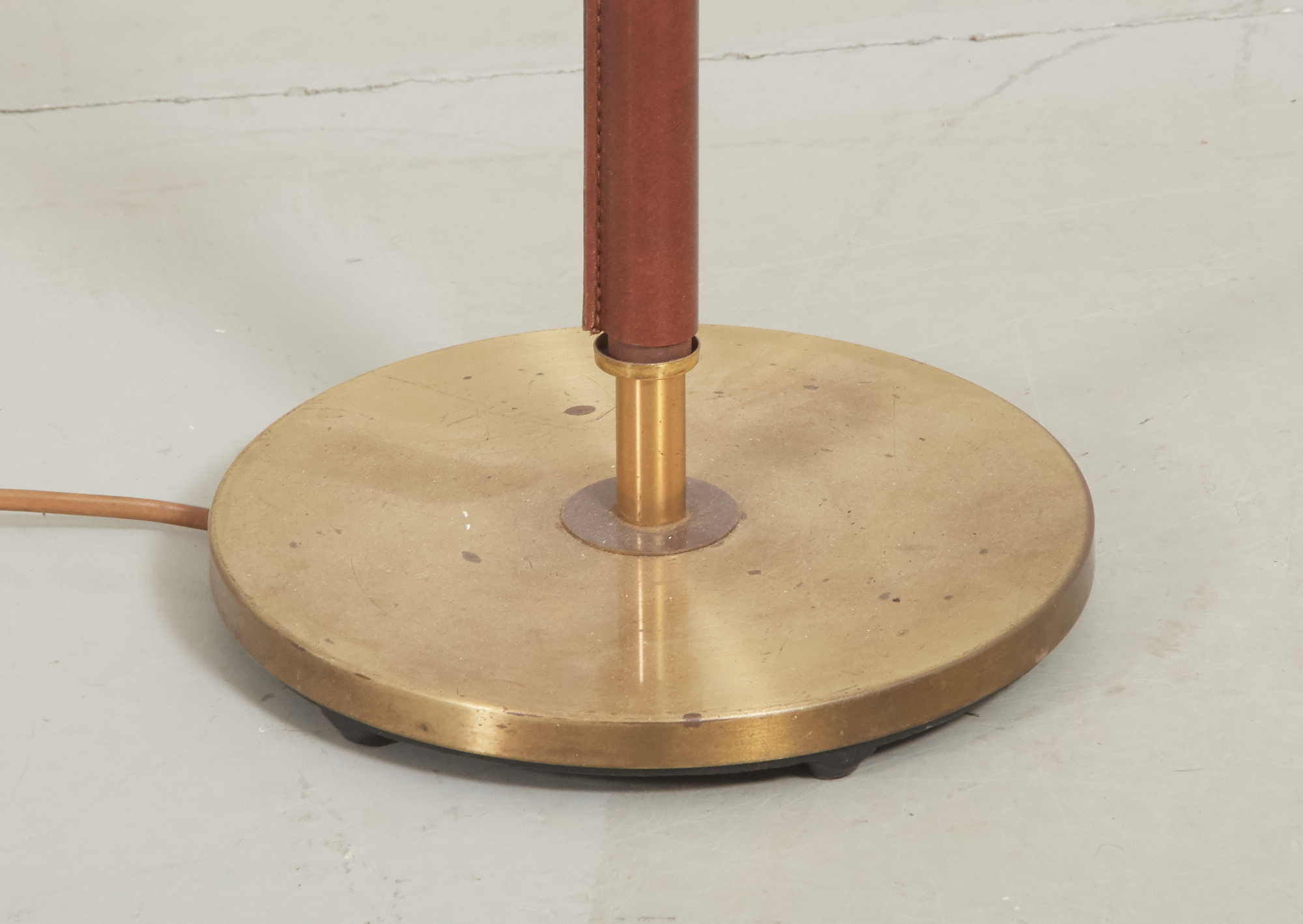 Fot i mässing, delvis läderklädd, , höjd ca 130 cm, bruksslitage.