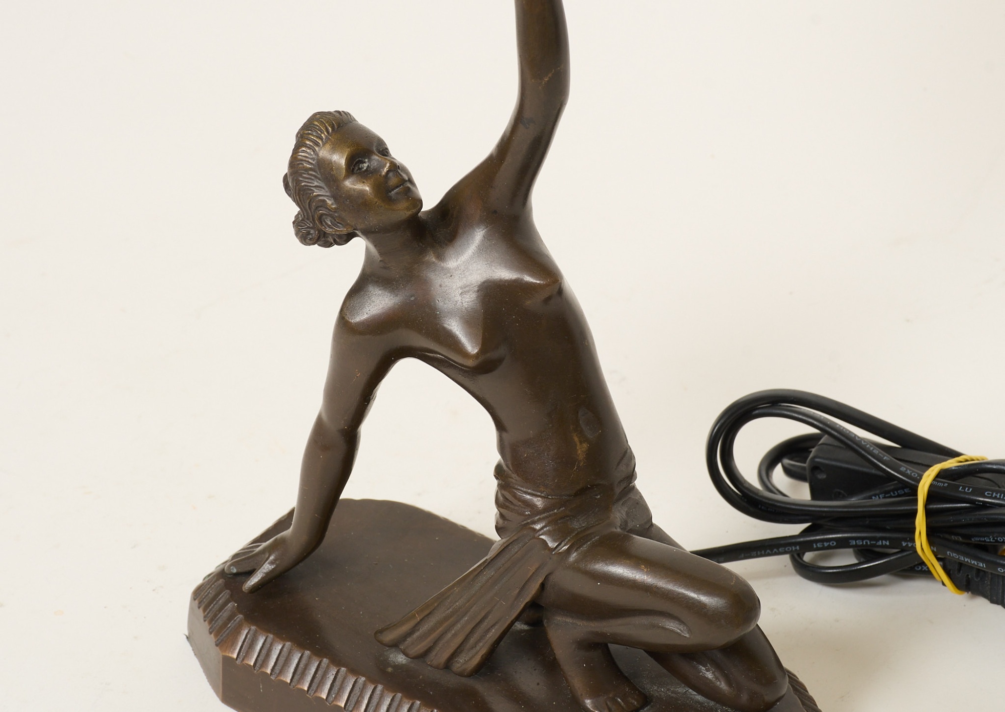 Patinerad brons, i form av kvinna med glob, höjd 40 cm, smärre bruksslitage.