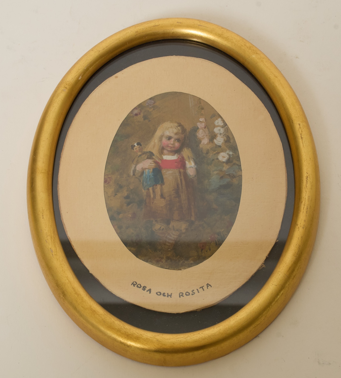 Akvarell, "Flicka med docka", tillskriven Jenny Nyström