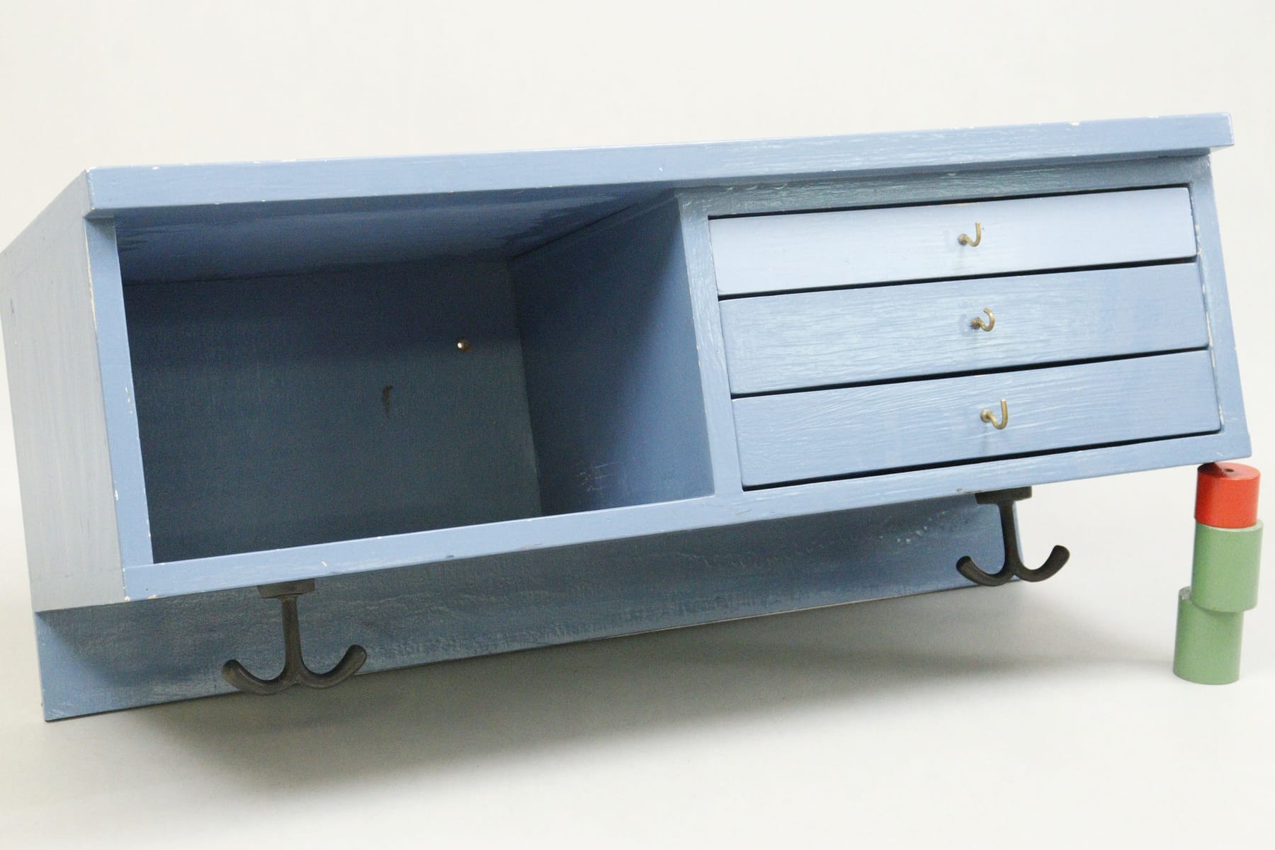 Vägghylla med krokar, blåmålad