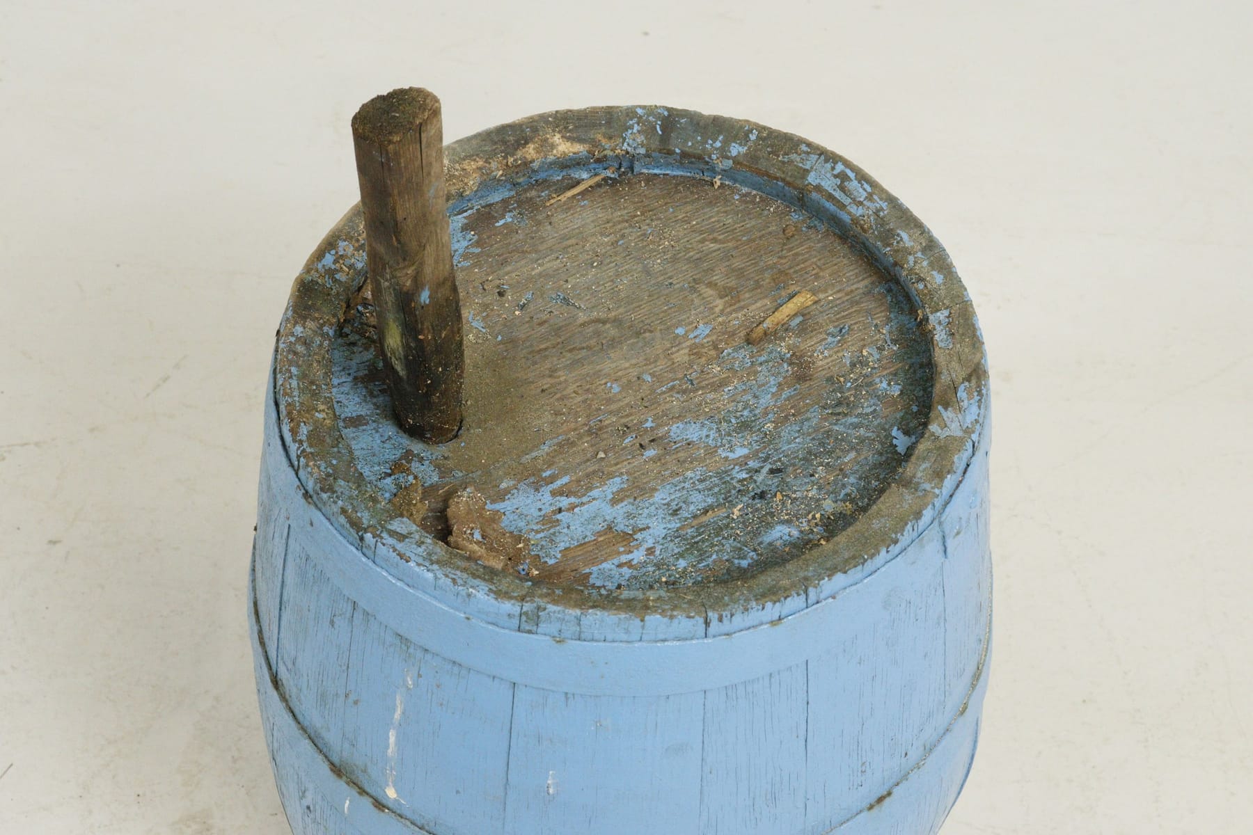 Trätunna, blåmålad, med plugg/pinne
