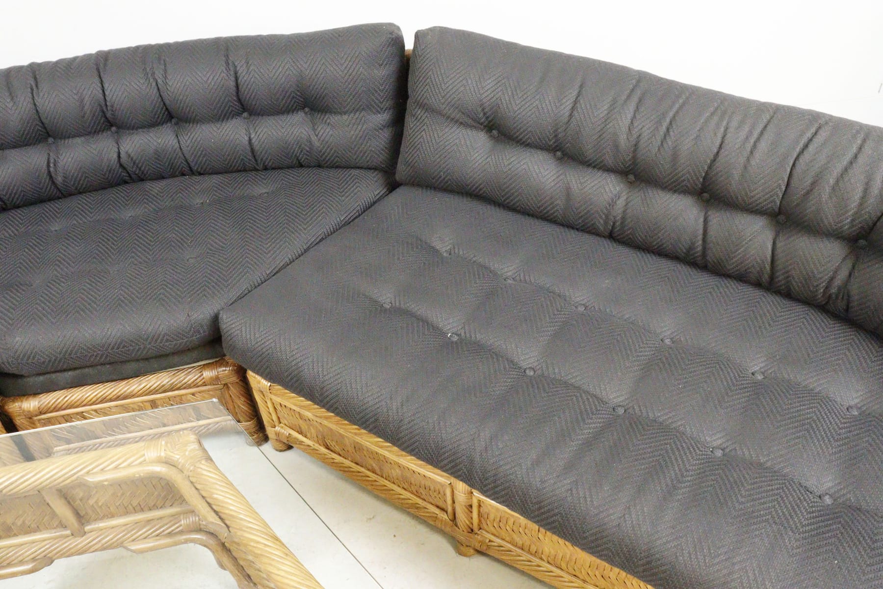 Bilder Rottingsoffa, hörnmodell, med bord med glasskiva