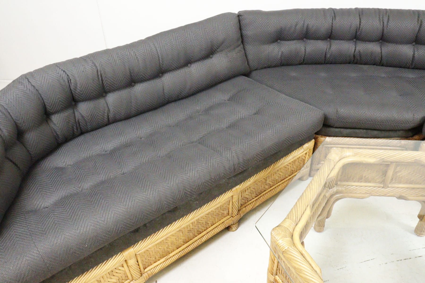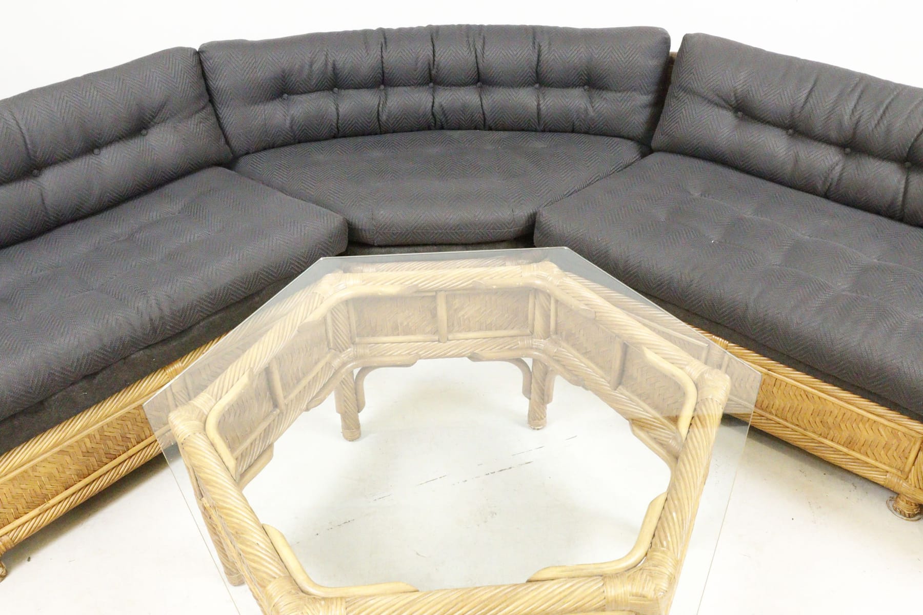 Rottingsoffa, hörnmodell, med bord med glasskiva