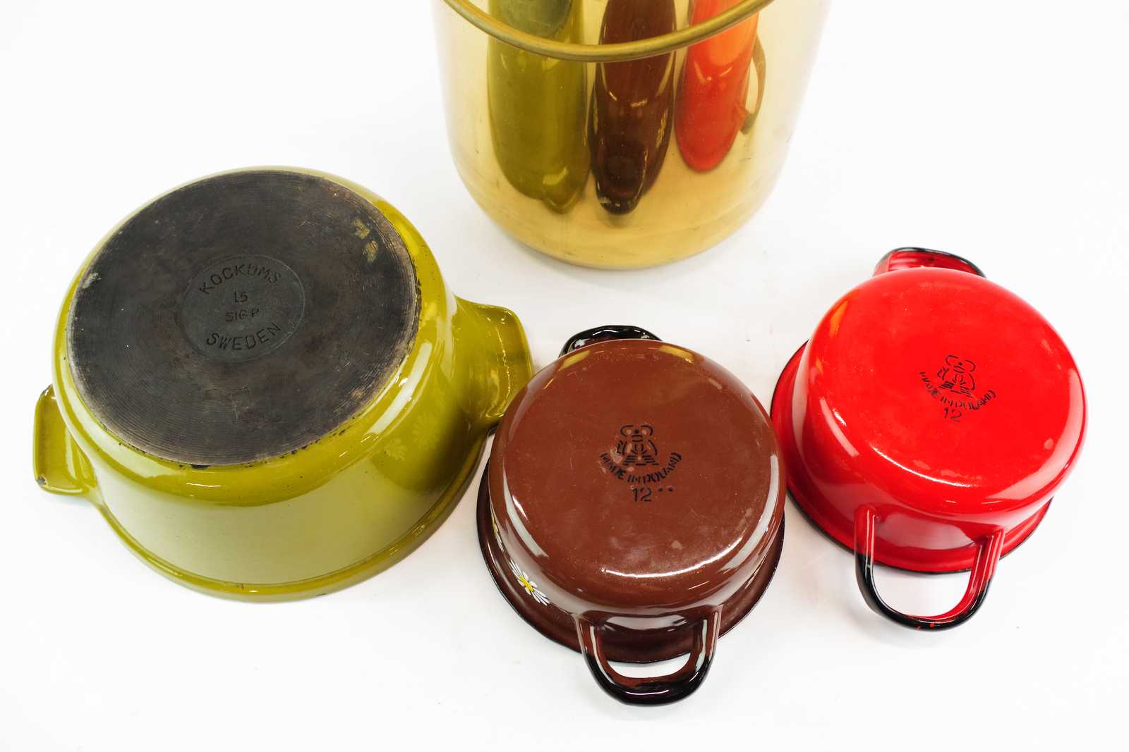 Bilder GRYTOR Största gjutjärn Kockums 1,5L & MJÖLKHÄMTARE mässing H:30 cm