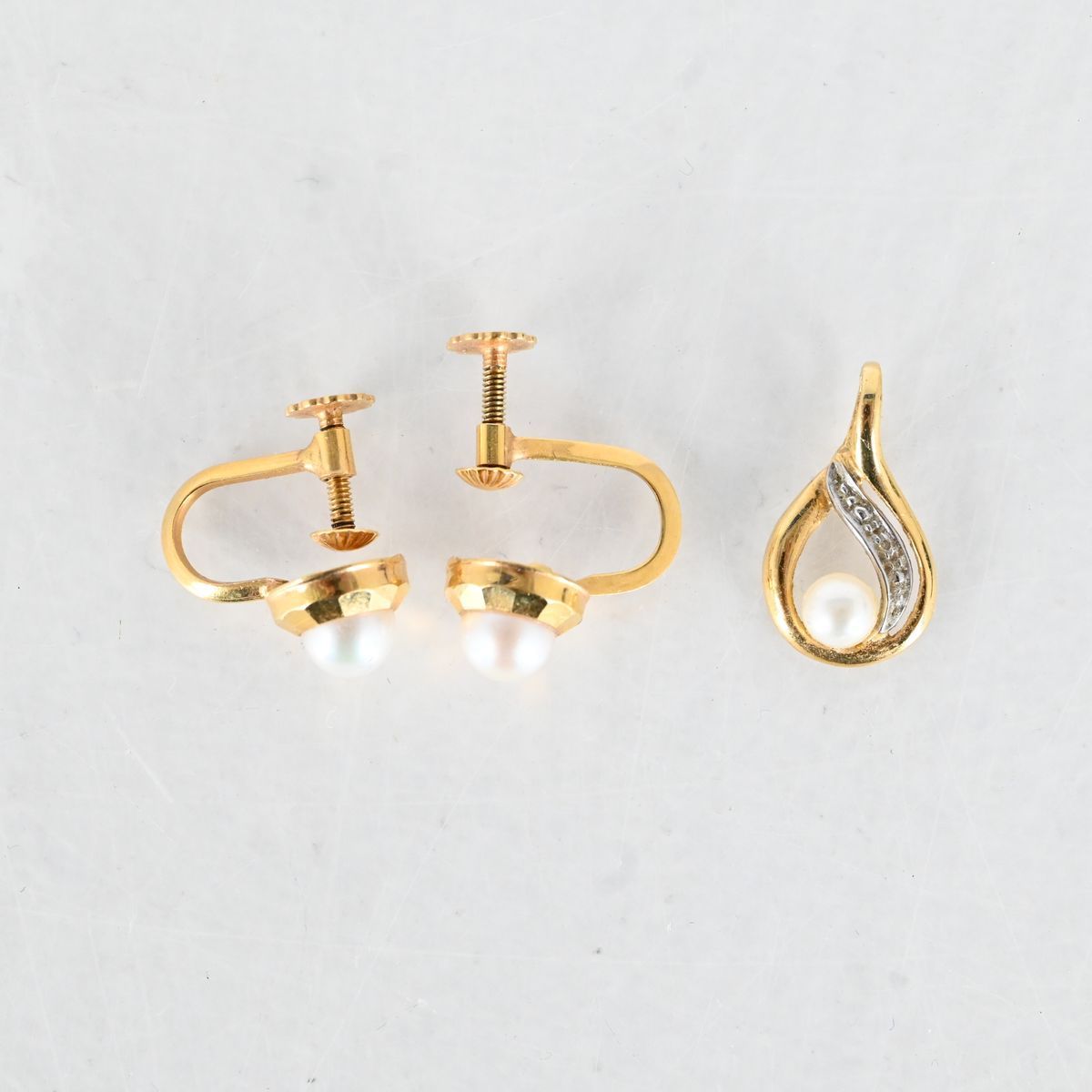 Bilder 1 par örhängen, hänge, guld med pärlor, 18 K