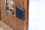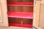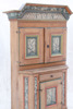 Delvis originalmålat. Upptill med dubbla dörrar, invändigt två hyllor. Nedtill en låda och en dörr. Nyckel finns.