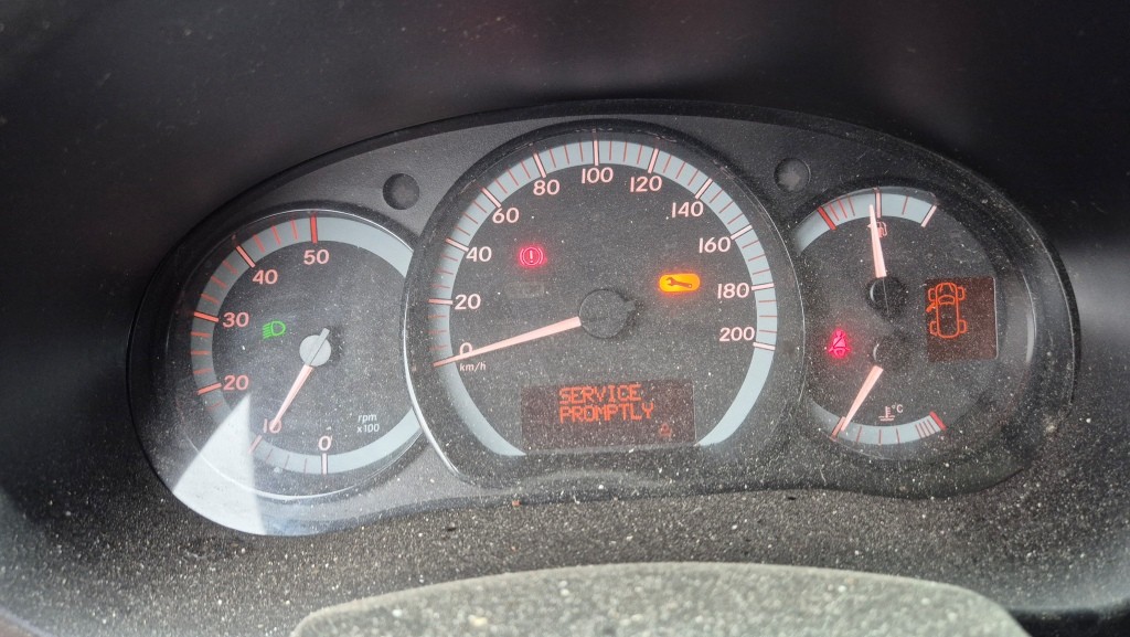 Spricka i framrutan (Ej i synfält)Servicelampan lyserEndast 1 nyckel, fjärrlåsningen fungerar ej med nyckeln.Endast vinterdäck