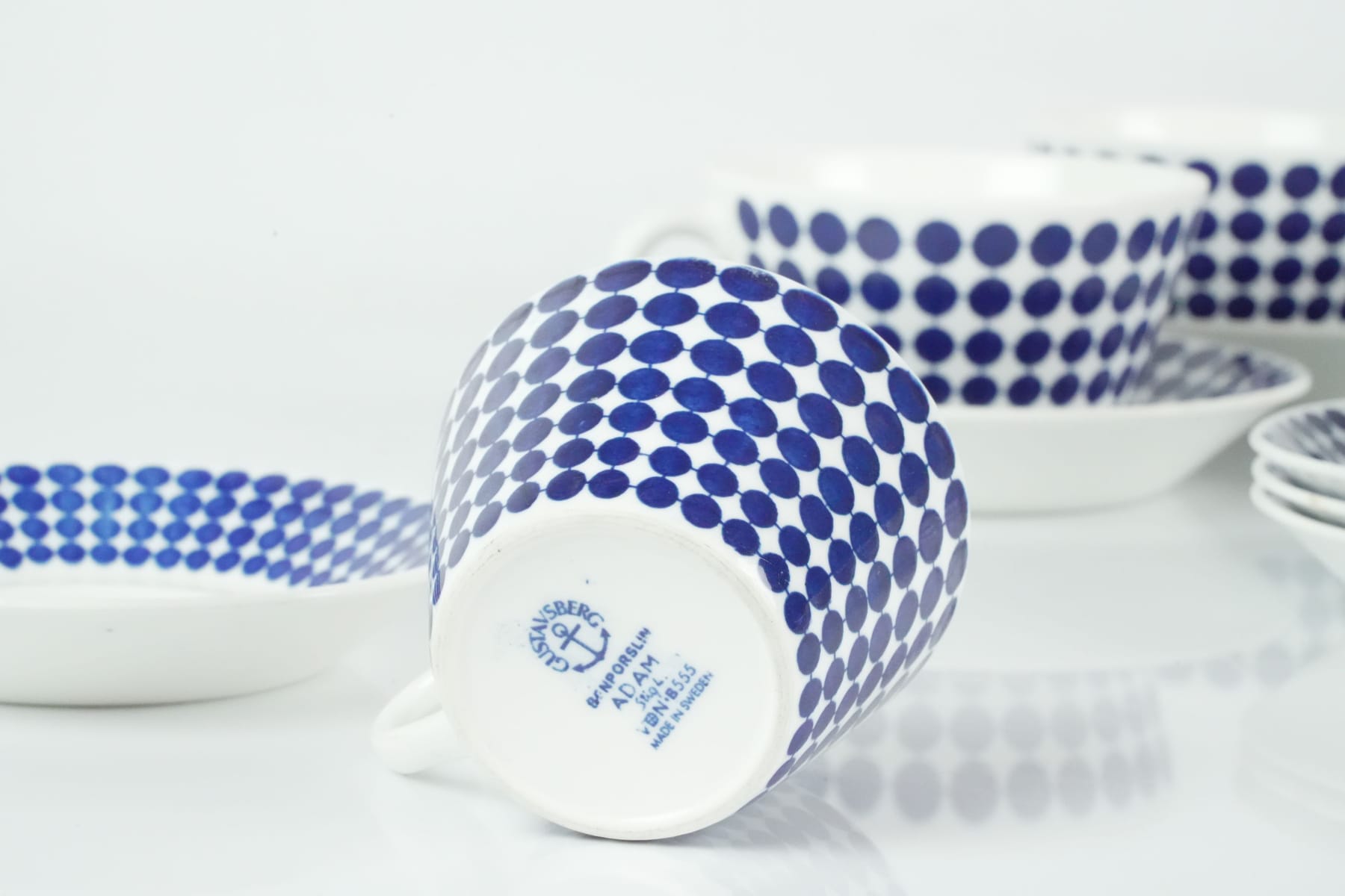 Bilder STIG LINDBERG (1916-1982), tegods, 6 st, samt kaffegods, 3 st, "Adam", Gustavsberg