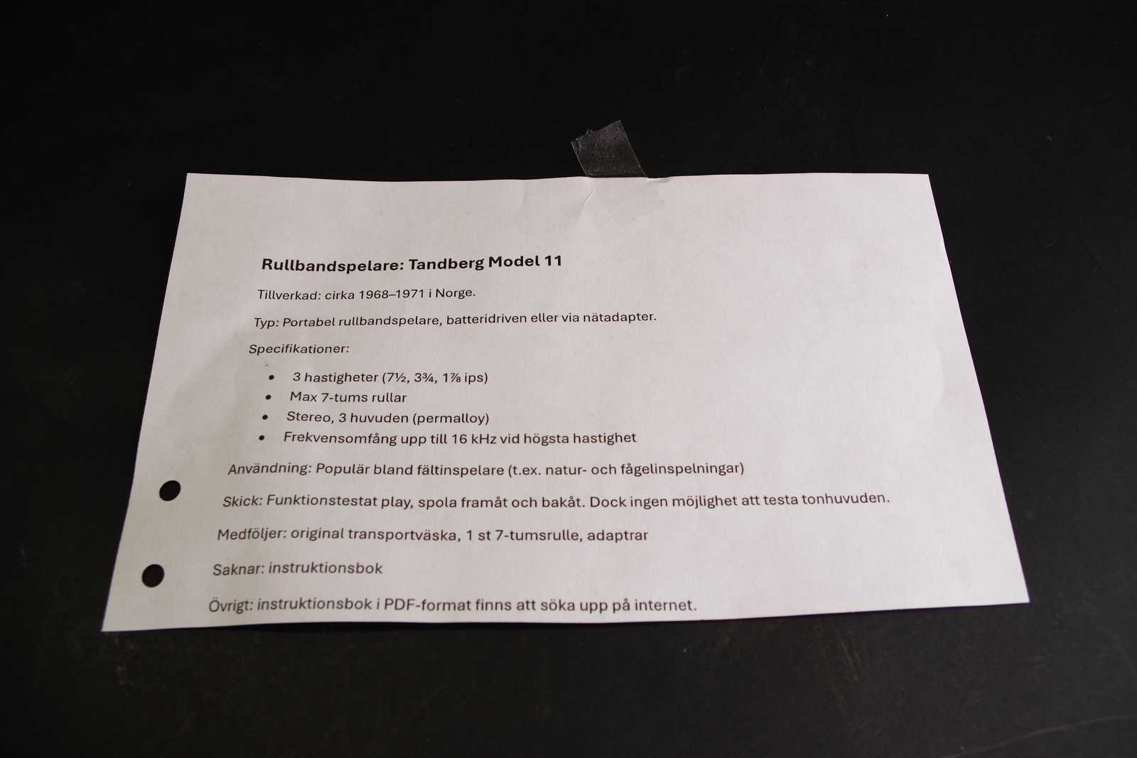 Auktioner Elektronik RULLBANDSPELARE Tandberg 11 3 hastigheter, max 7-tums rullar. Stereo 3 huvuden 1960/70-tal (Fungerar, tonhuvuden ej testade)