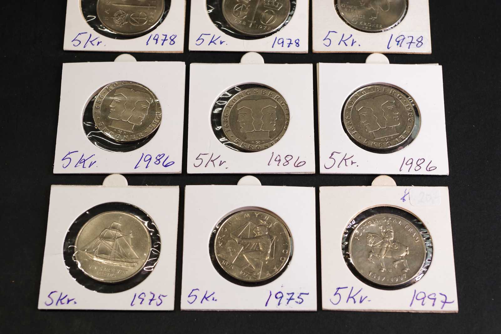 Bilder JUBILEUMSMYNT norska 9st. 5:- 1975, 1978, 1986, 1997