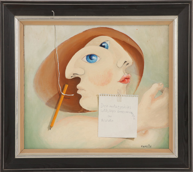 Olja på pannå, "Den metafysiskt själsliga omfamningen". Signerad.