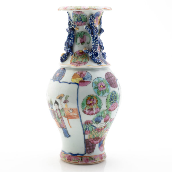 Dekor i emaljfärger, hänklar i form av ödlor, höjd 24 cm