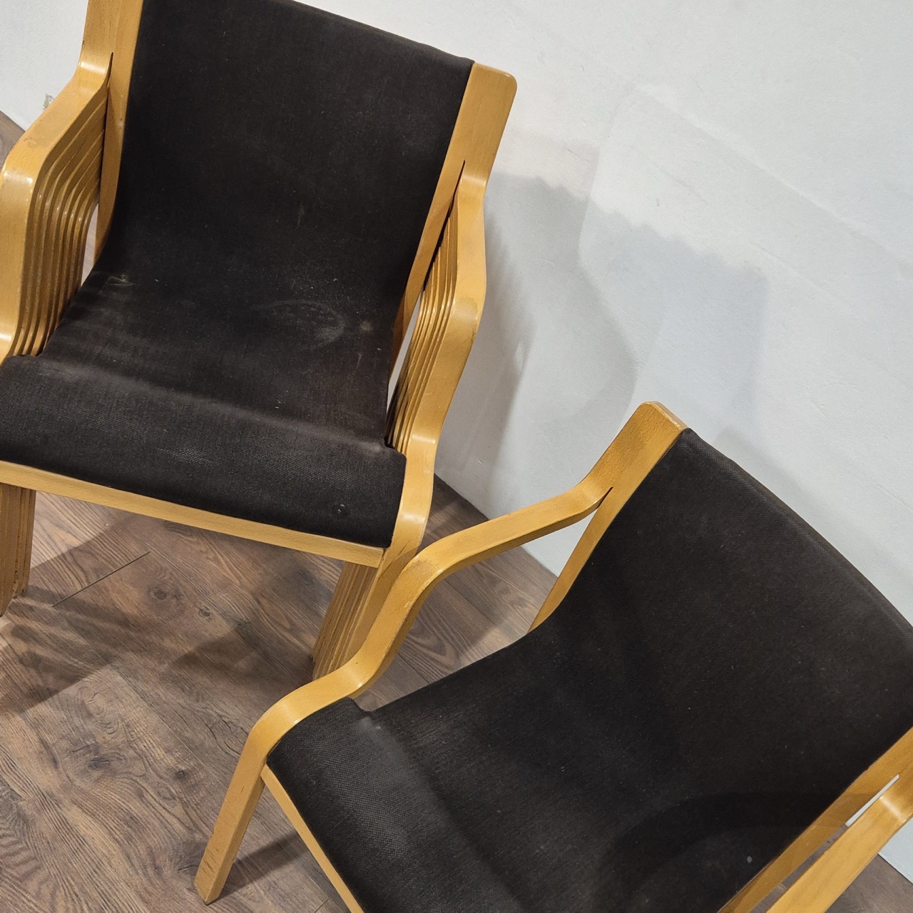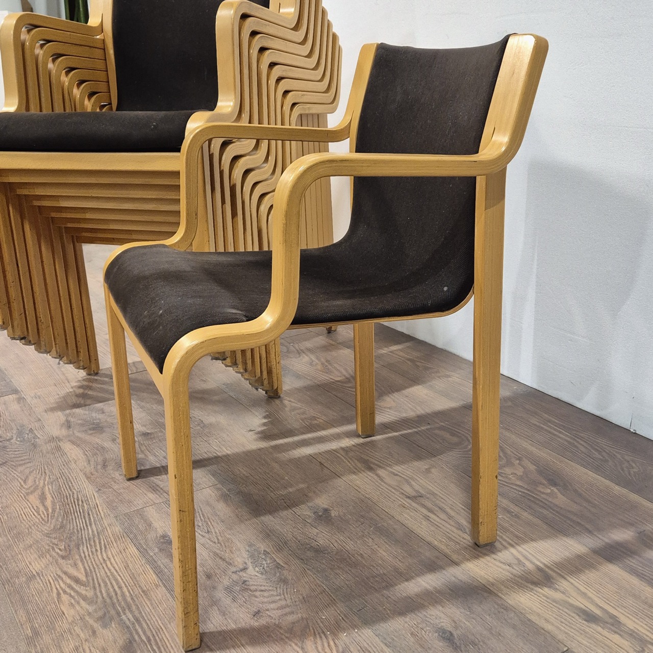 Staplingsbara stolar. Skavanker finns, Dammigt tyg ev.fläckar. 9st