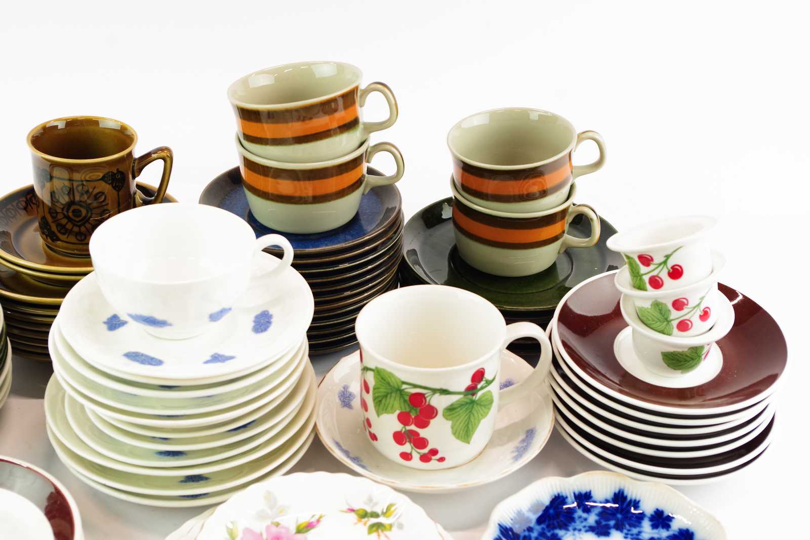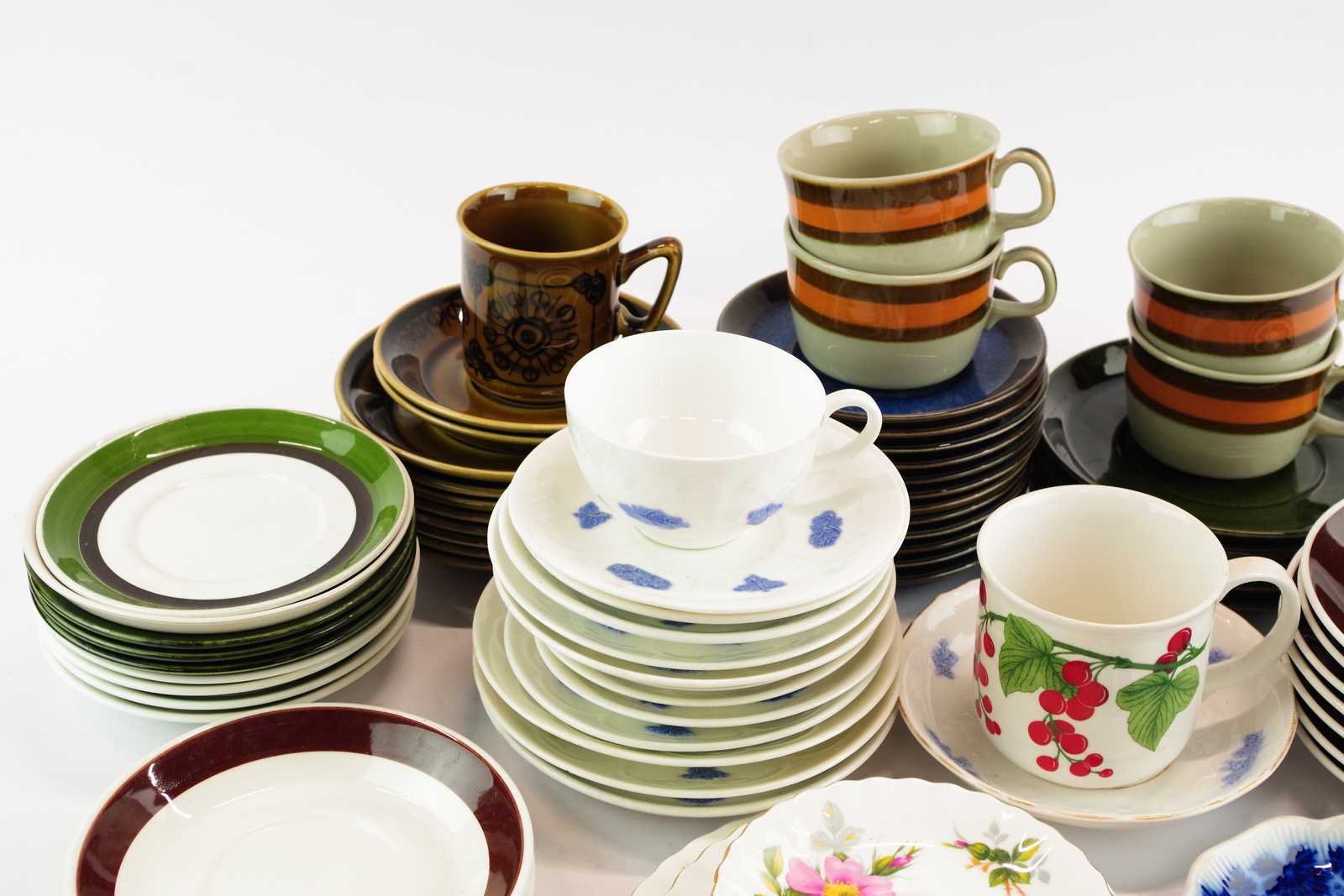 Bilder ÄGGKOPPAR, parti KAFFEKOPPAR & KAFFEFAT bl.a. Rörstrand "Annika", Gustavsberg "Blå Blom", Gefle "Kosmos" Stavangerflint