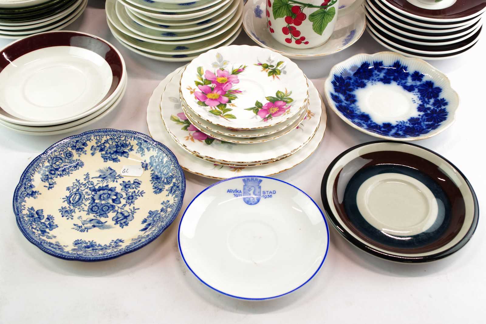 Auktioner ÄGGKOPPAR, parti KAFFEKOPPAR & KAFFEFAT bl.a. Rörstrand "Annika", Gustavsberg "Blå Blom", Gefle "Kosmos" Stavangerflint