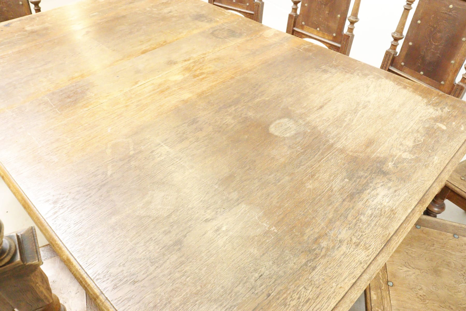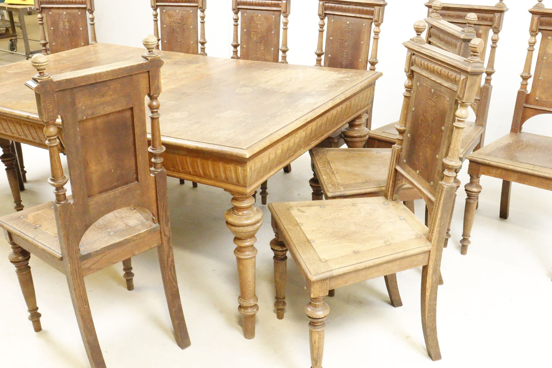 Matgrupp, ek, bord med 10 stolar och 3 iläggsskivor