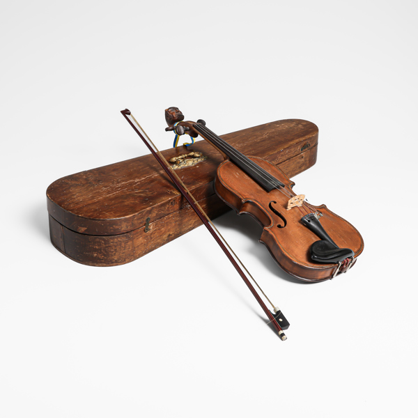 FIOL I FIOLLÅDA, 1800-tal, Dresden, Tyskland, handtag i mässing, låda i trä.