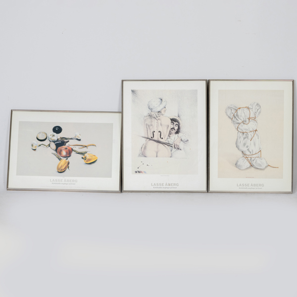 Auktioner Konst & Grafik LASSE ÅBERG, 3 st affischer, bla från Gotlands konstmuseum 24 feb-1 apr 1990
