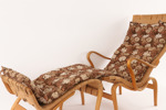 Fåtölj med fotpall, "Pernilla", Bruno Mathsson för firma Karl Mathsson, Värnamo, daterad 1944