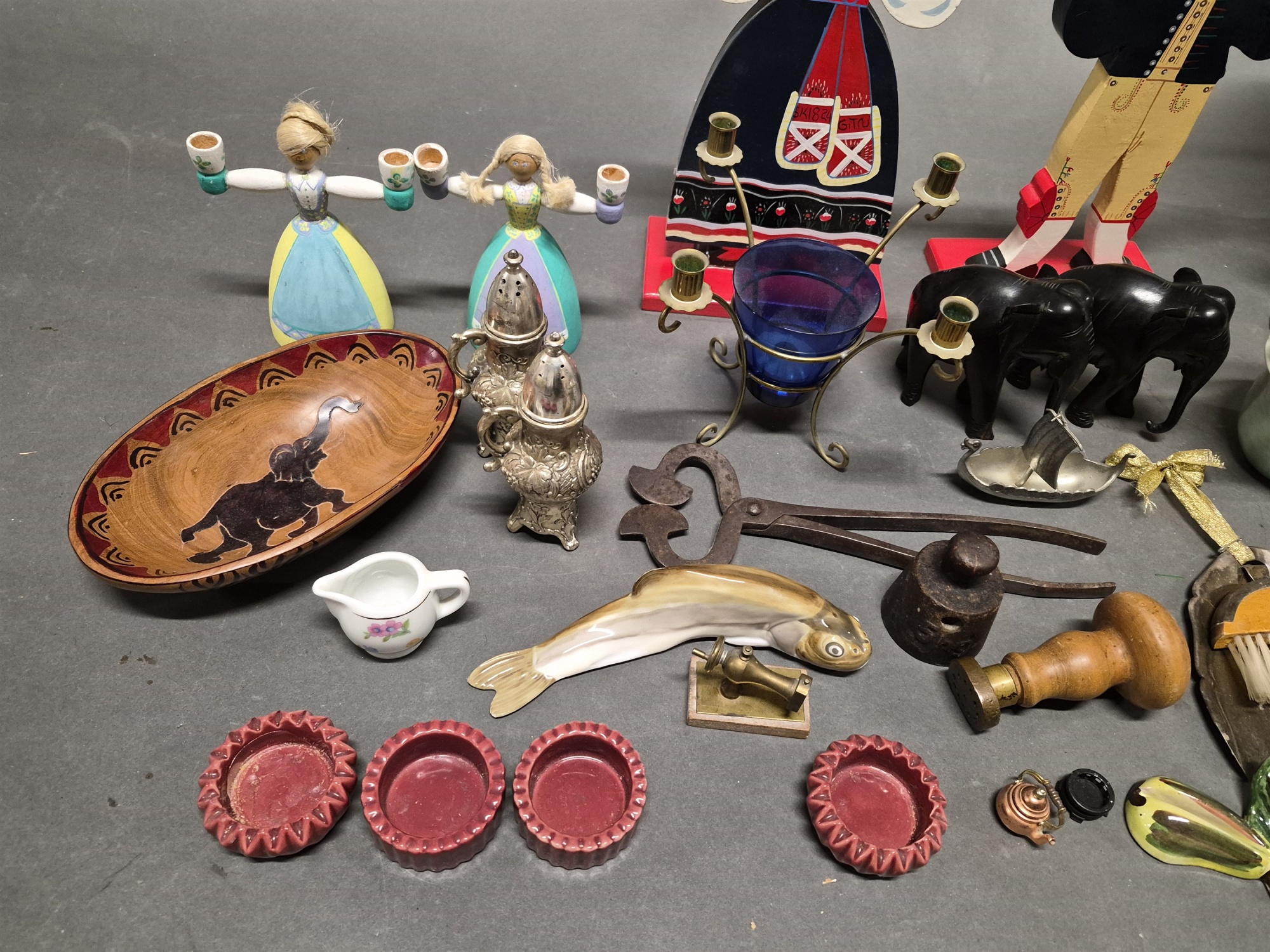 Bilder Parti bl.a köksvåg, träljusstakar högsta 42 cm