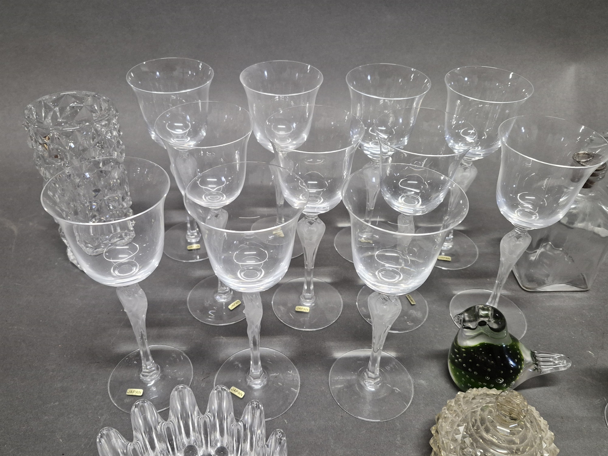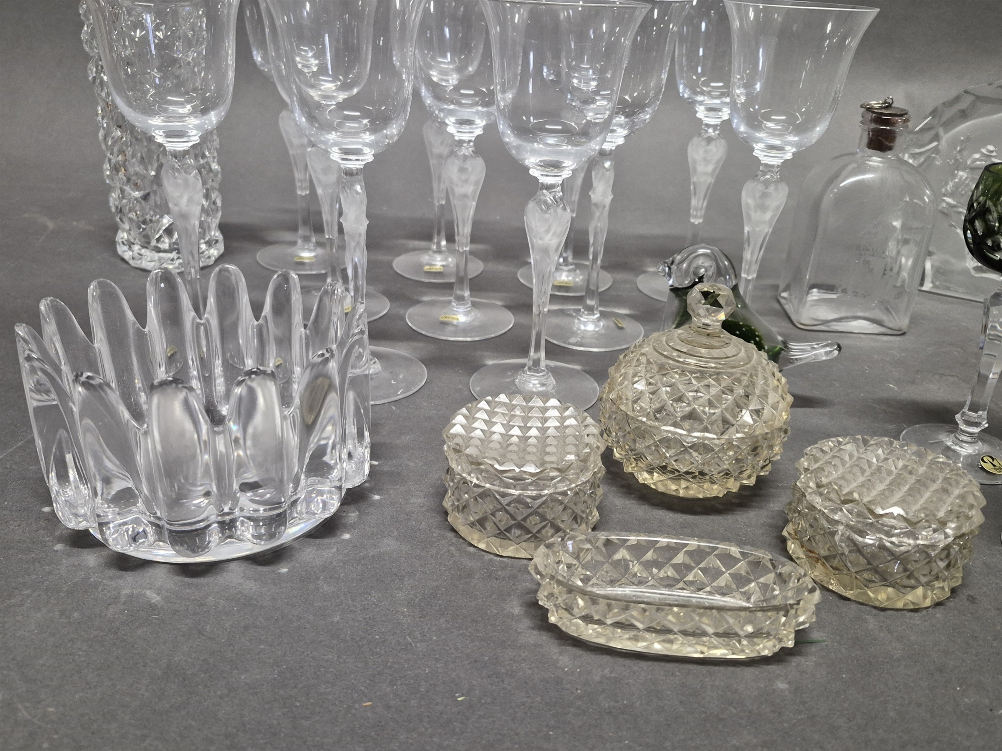 Parti glas, bl.a vinglas, fågelfigurin & likörremmare högsta 20 cm