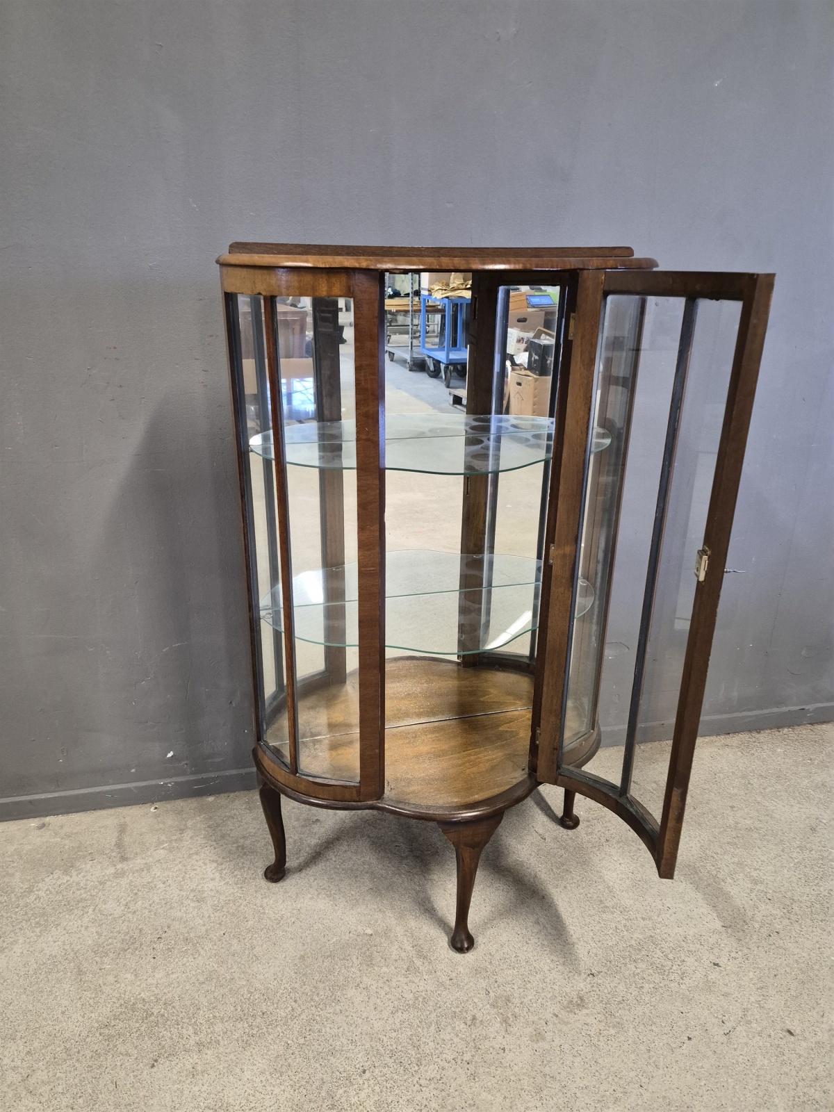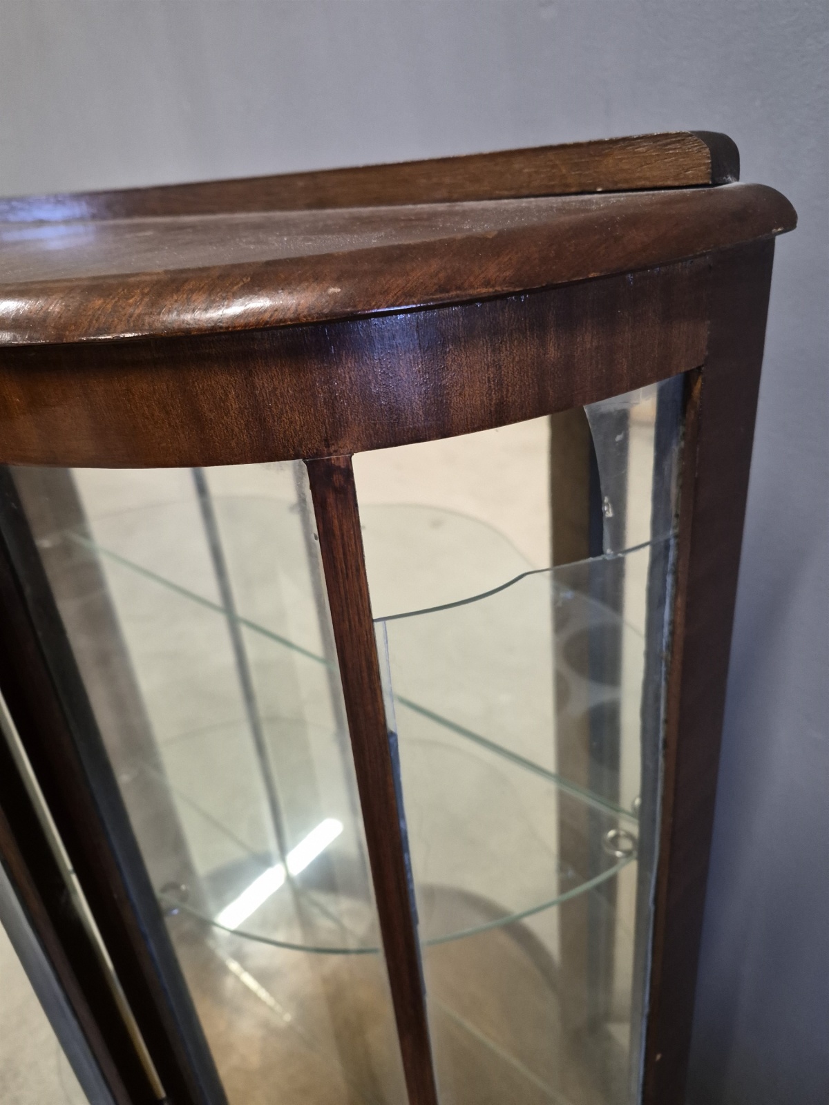 Vitrinskåp, ett glas defekt, höjd 124 cm, bredd 72 cm, djup 30 cm
