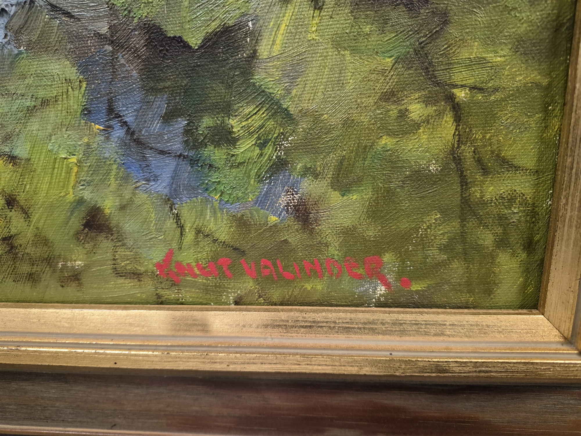 Knut Valinder olja på duk, "Fåglar i bo" mått 77 x 45 cm