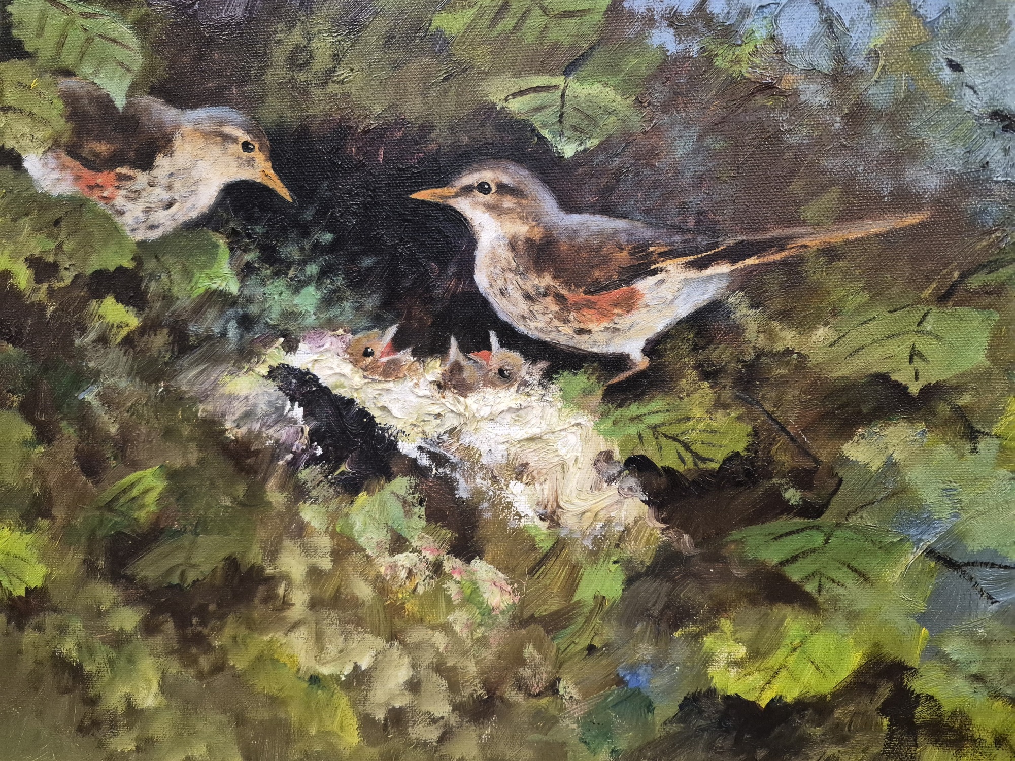 Bilder Knut Valinder olja på duk, "Fåglar i bo" mått 77 x 45 cm