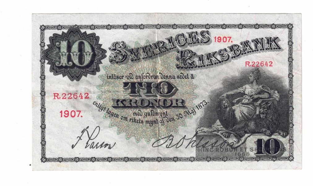 SEDEL. 10 kronor 1907