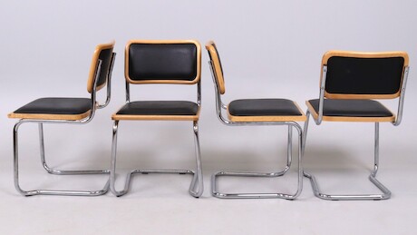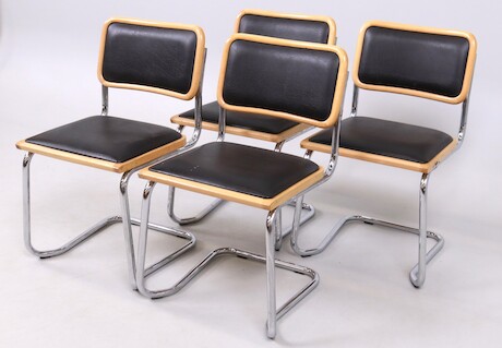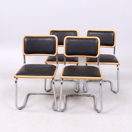 Bilder Stolar, 4 st, stålrör, ryggar och sitsar klädda i konstskinn, stapelbara, 1900-talets slut