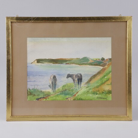 Bilder Oidentifierad konstnär 2 st akvareller i en inramning, rammått 39 X 47