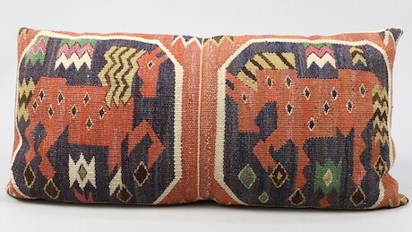Auktioner Mattor & Textil Märta Måås Fjetterström (1873-1941) Kudde "Bäckahästen" tillverkad före 1941, signerad MMF, 75 X 37 cm