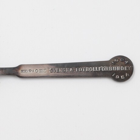 Auktioner Guld, Silver & Smycken Teskedar ett par silver, märkta Svenska fotbollsförbundet", vikt = 28g