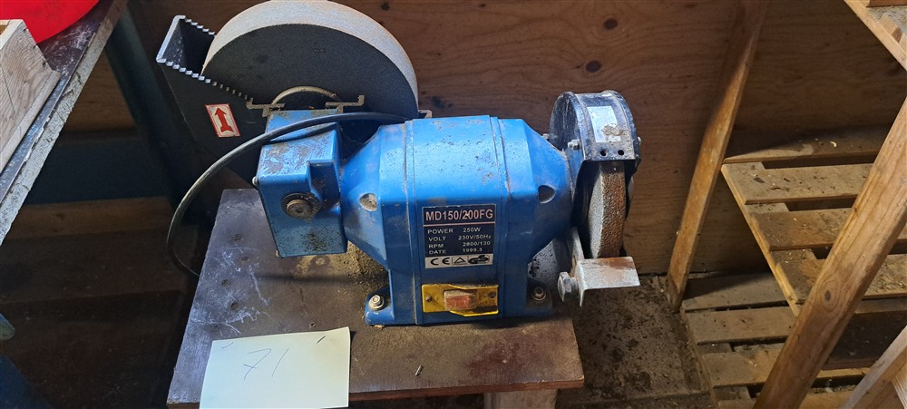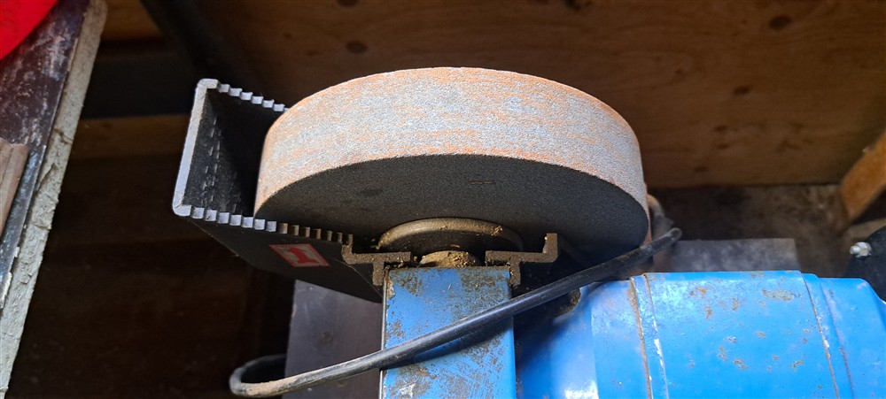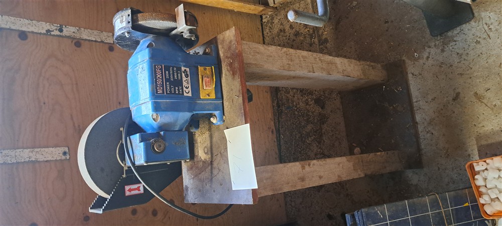 Slip med slipsten och smärgel på stålstativ