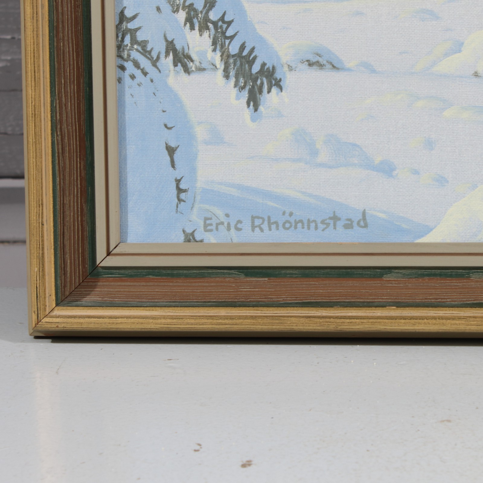 Olja på duk, "Vinterlandskap", ram 56,5x65,5 cm, bild 46x55 cm. (vån3)