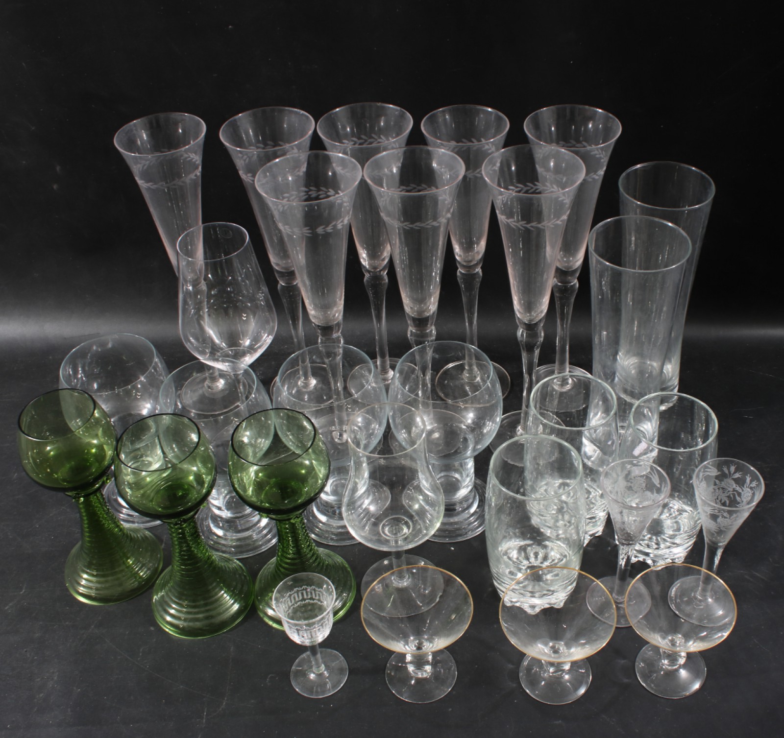 Samling, olika modeller b.a remmare, champagneglas m.m, höjd 28 cm och lägre. (vån3)