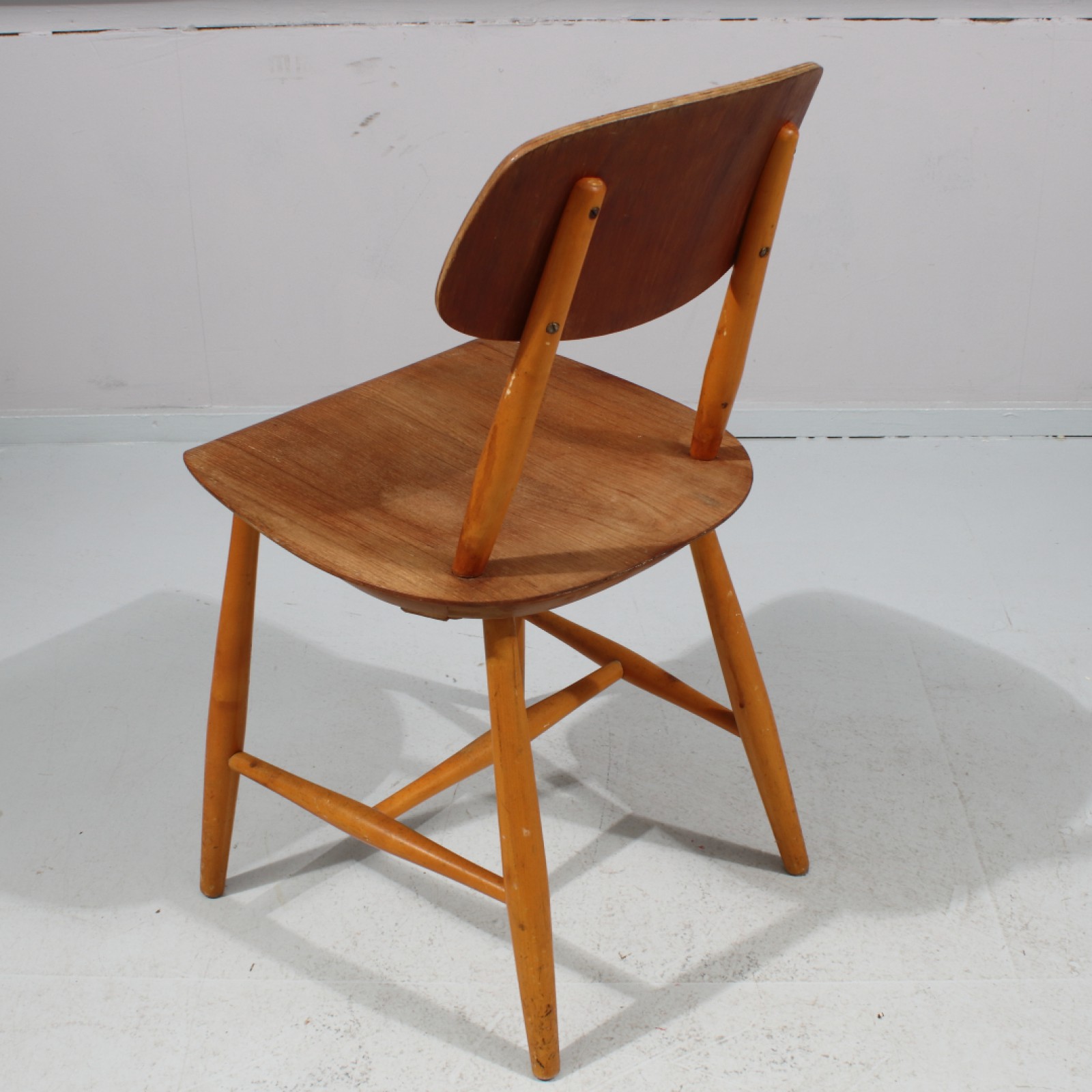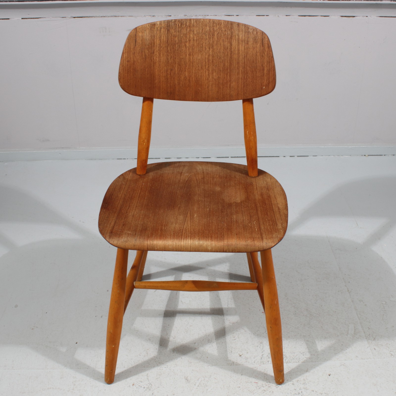 stomme i lövträ, sits och ryggbricka fanerade med teak, 1950,60-tal, åldersrelaterat slitage, Rh.78, B.42, Sh.44 cm. (vån3)
